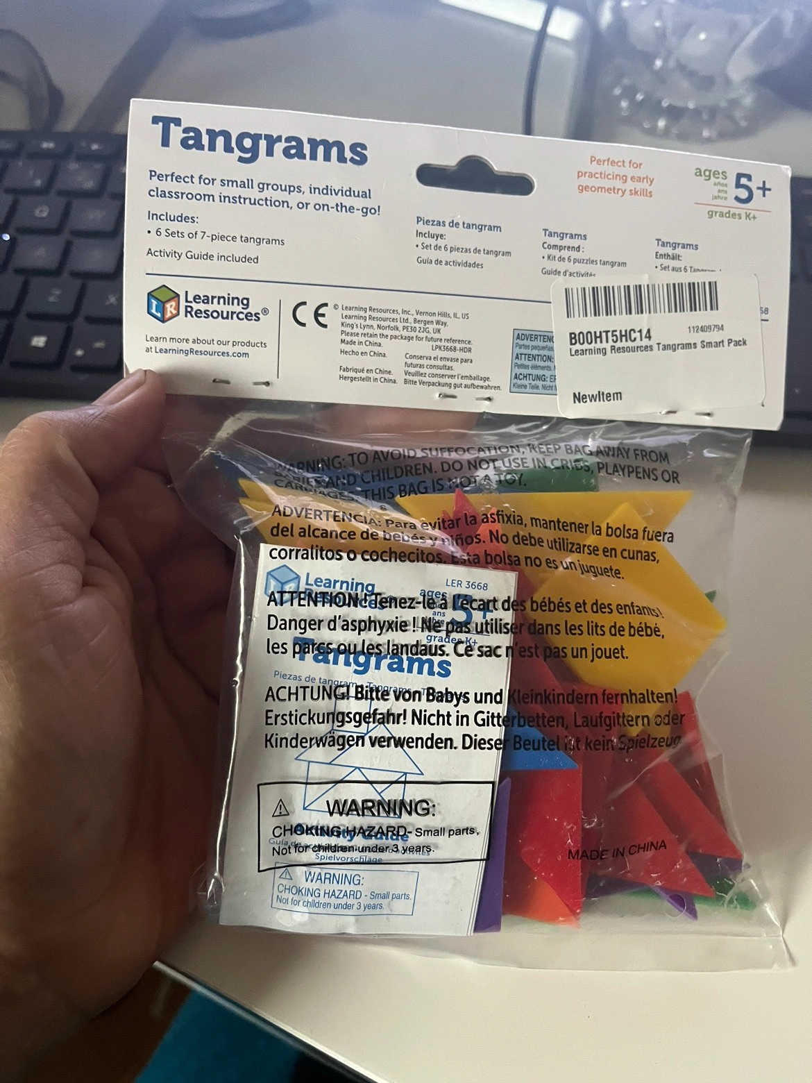 Buy & SellLearning Resources Tangrams Ages 5 plusLearning Resources Tangrams Ages 5 plus$12Includes 6sets of 7 pieces. Great for learning and developing thinking and gunfire skills .ConditionNewAge6-8 yearsWHERE TO MEETMarkham and DenisonView MapSELLERShazMarkham E100 reviews0 chats·0 favorites·3 viewsSEND CHAT TO SELLERHi Shaz! I’m interested in your listing.Hi Shaz! I’m interested in your listing.Get the Karrot app to chatSign In to chat