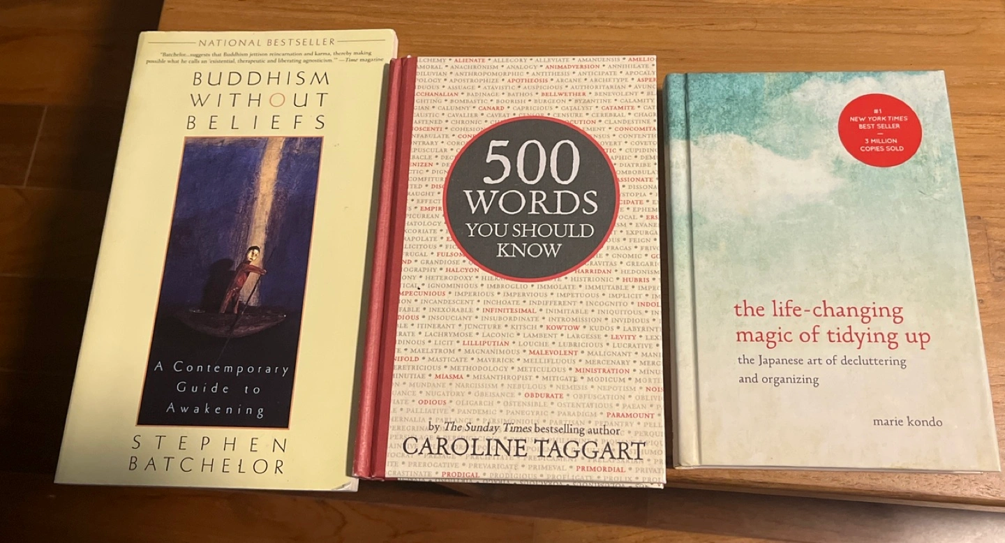 3 books - Buddhism - words - Marie Kondo