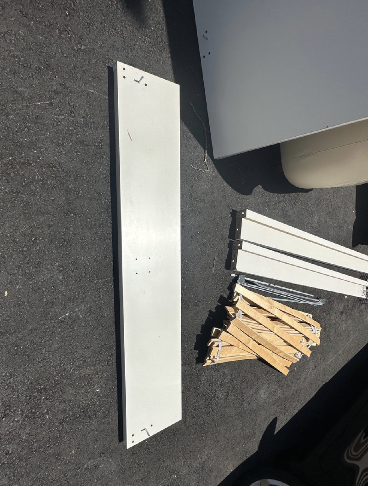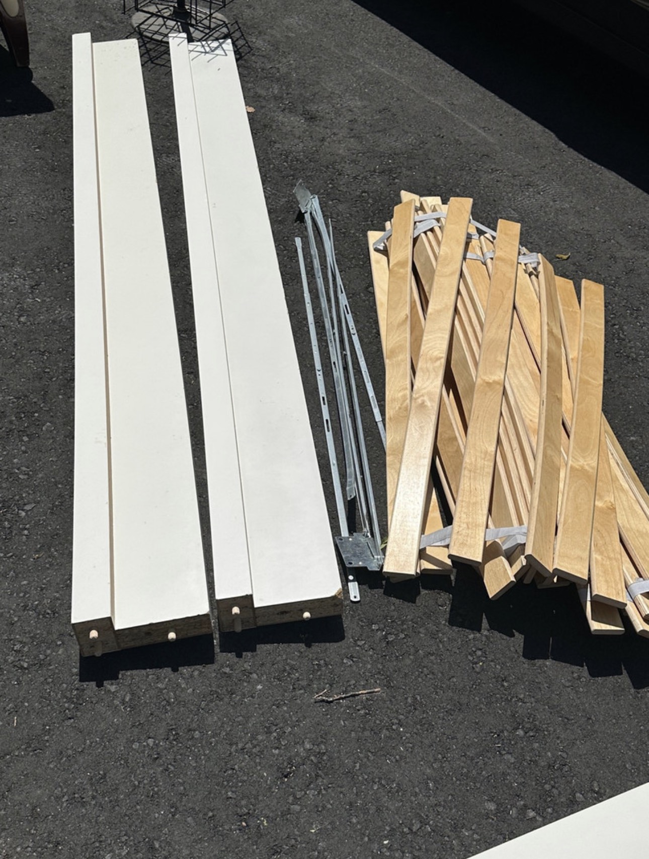 36FREE Malm Double Bed, Bed Frame NEED GONE ASAP **Support beam missing*** Can buy support beam at IKEA for $20 White bed frame Split on bottom of head board, but can’t be seen when put together All screws and Allan key’s included NEED GONE ASAP