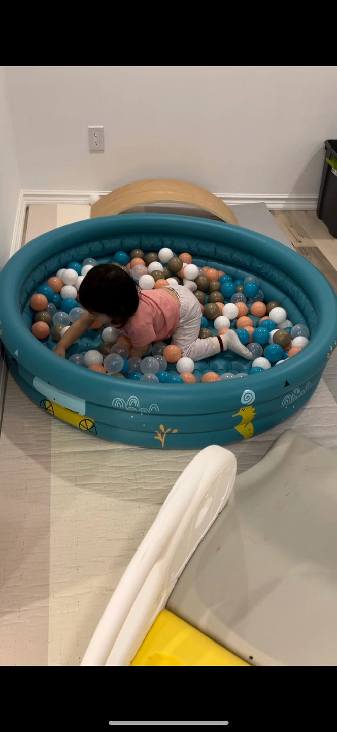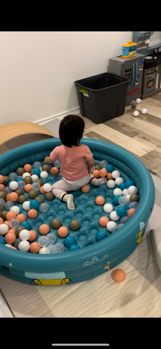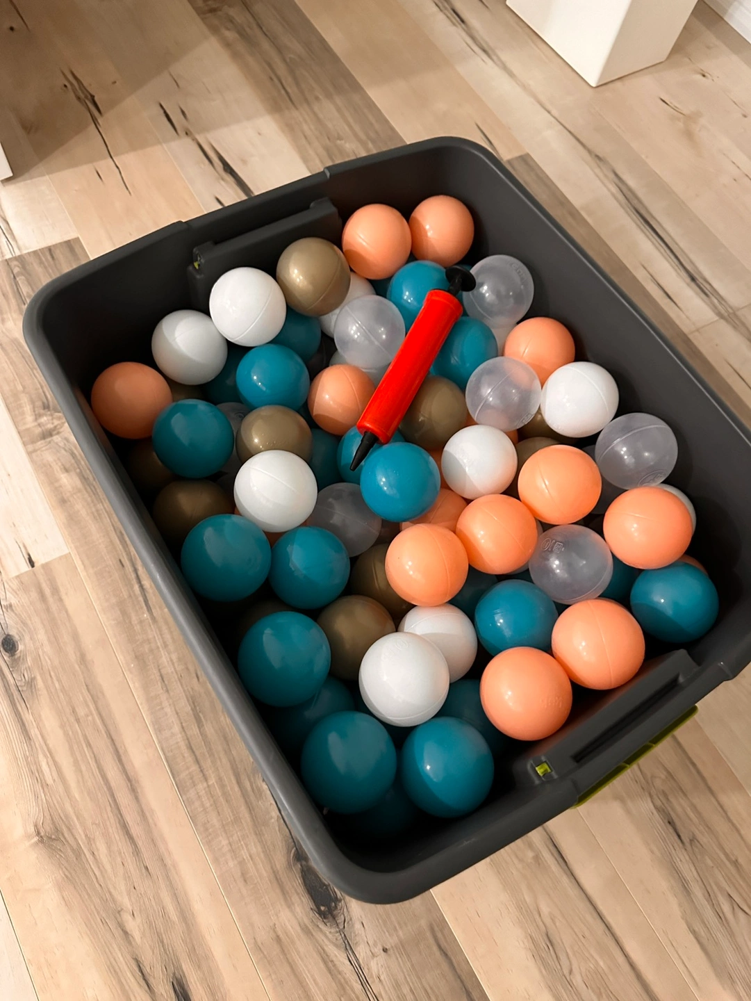 About 100 pitballs with large inflatable pool. Comes with free inflator. Easy to setup and put into storage.
