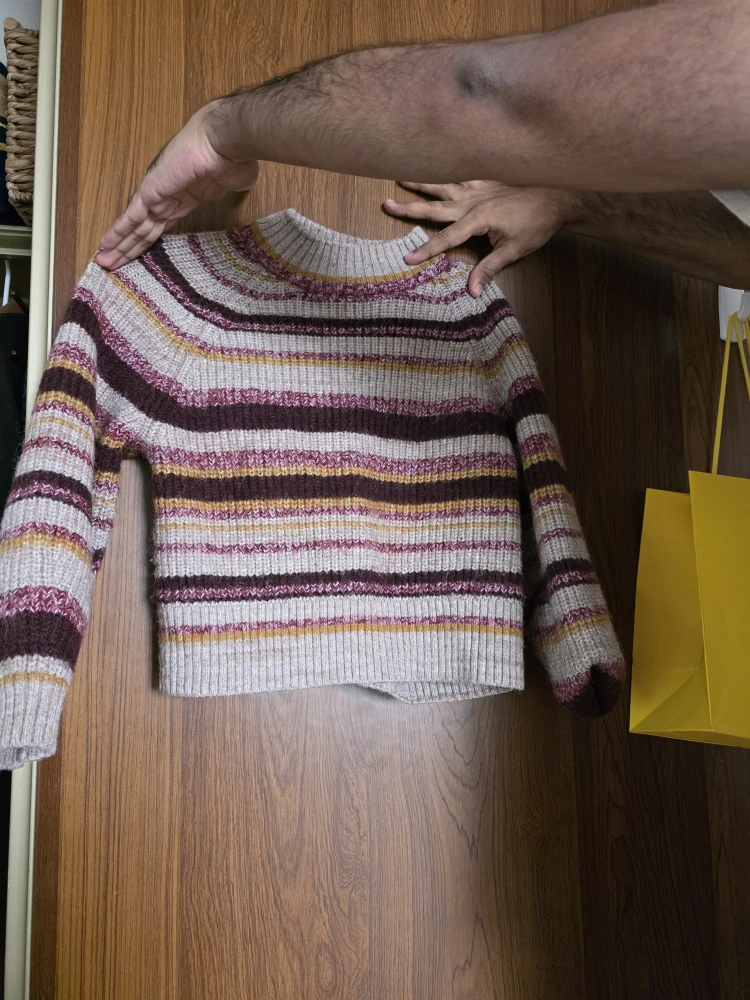 Selling a cute striped knit sweater! It features a mix of neutral, burgundy, and gold stripes. Perfect for layering during the cooler months. Old Navy Size S. Pickup at Yonge and Sheppard. #cleanout
