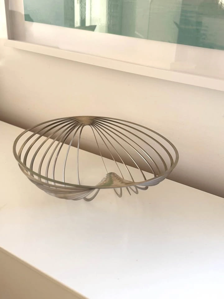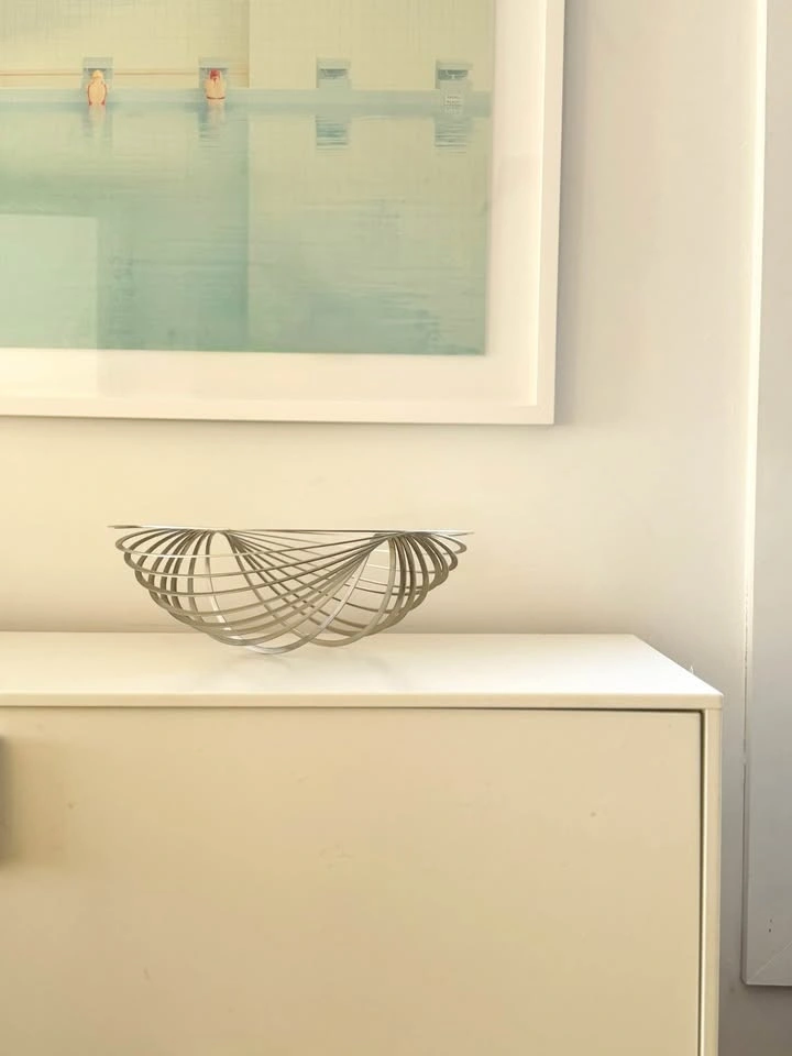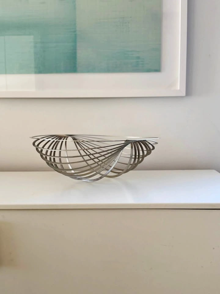 Features a weighted base that allows for a gentle rocking motion—perfect as a sculptural centerpiece, a modern fruit bowl, or as a sculpture or hang as art on a wall.
