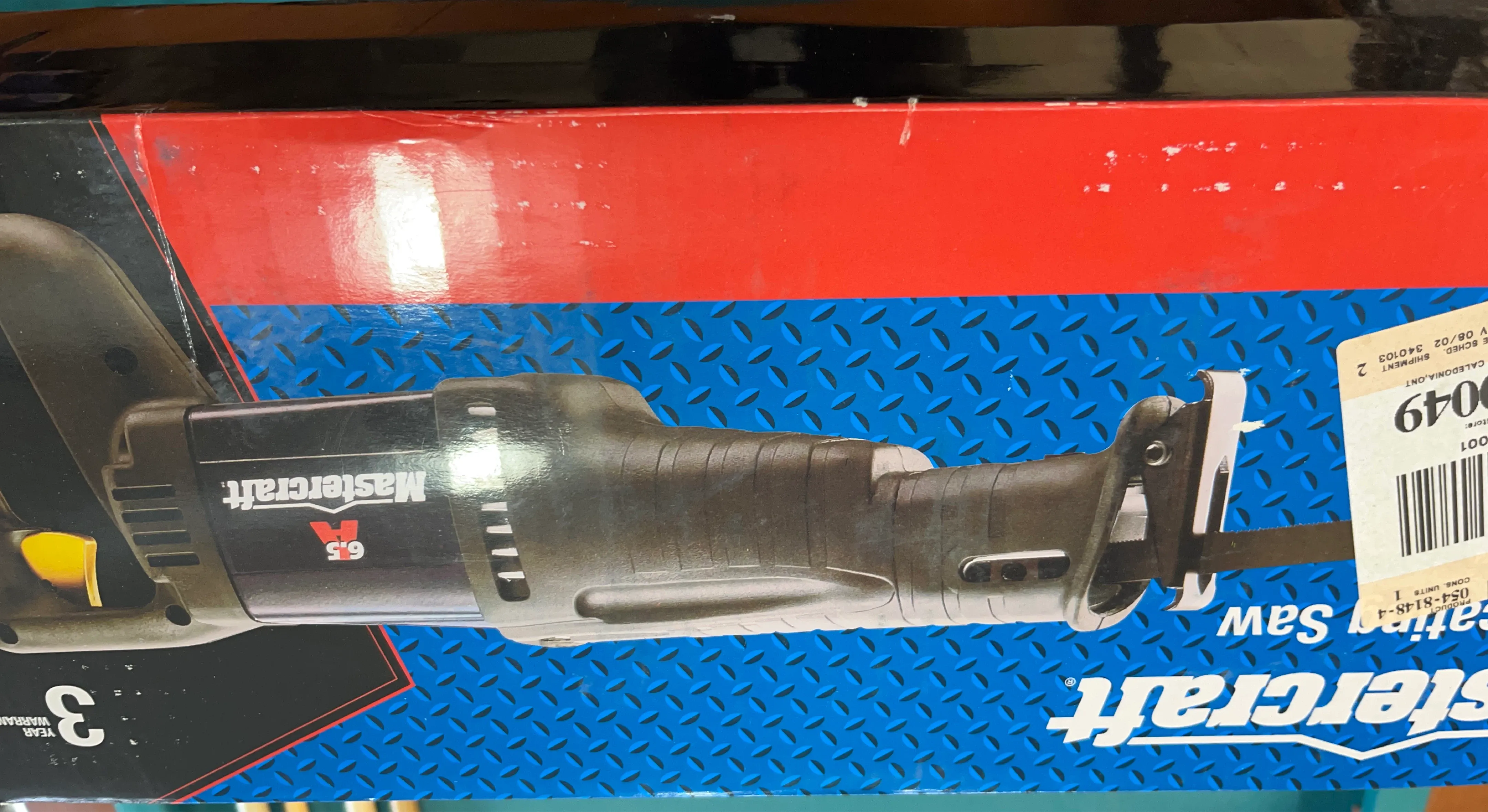This is a Mastercraft reciprocating saw with a 6.5 Amp motor. It comes with the original box and has a 3-year warranty. It's ideal for various cutting tasks.