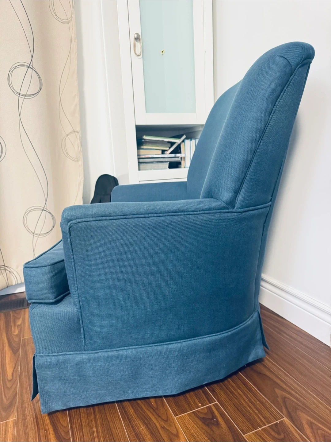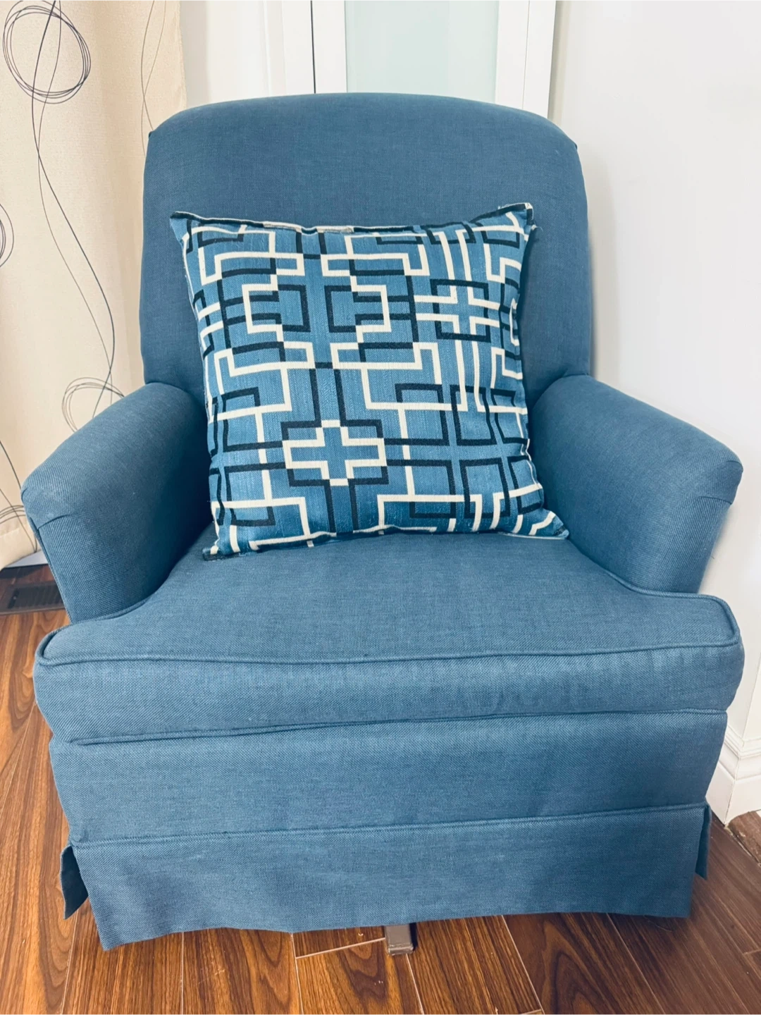 Buy & SellBlue Upholstered Swivel Glider ChairBlue Upholstered Swivel Glider Chair$50Comfortable blue upholstered swivel glider chair. Perfect for a nursery or living room. Come with a cushion pillow. Great condition!ConditionLike newWHERE TO MEETCheck LocationView MapSELLERverifiedKobayashiMarkham Central E853 reviews1 chats·4 favorites·47 viewsSEND CHAT TO SELLERHi Kobayashi! I’m interested in your listing.Hi Kobayashi! I’m interested in your listing.Get the Karrot app to chatSign In to chat