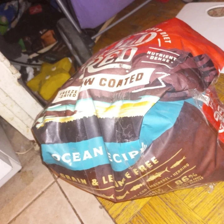 This is a bag of RED RAW COATED freeze-dried dog food with Ocean Recipes.