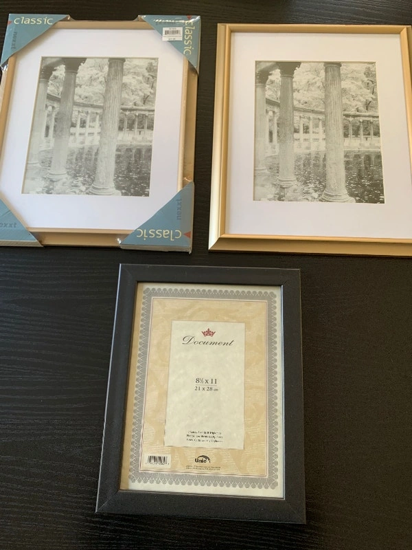 Selling all together in one set three brand new frames. All fit 8-1/2” x 11” photos or diplomas/certificates. One frame alone retailed for $30. Please see all my posts for more great deals! Pickup at Davisville station.