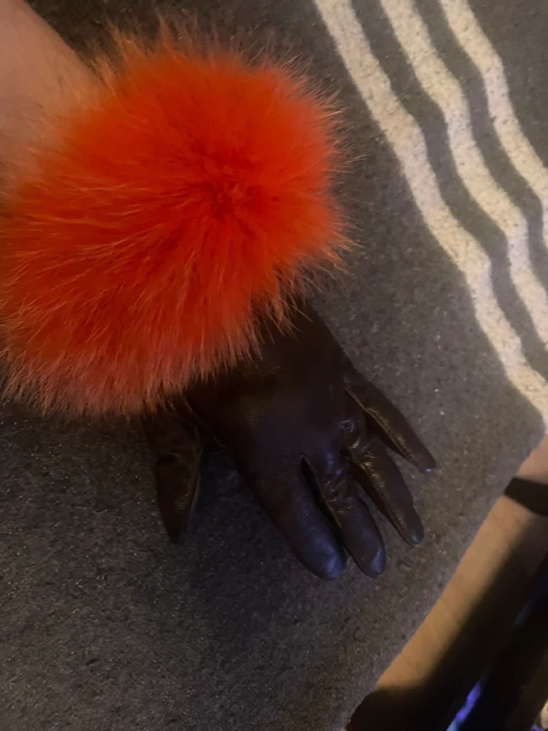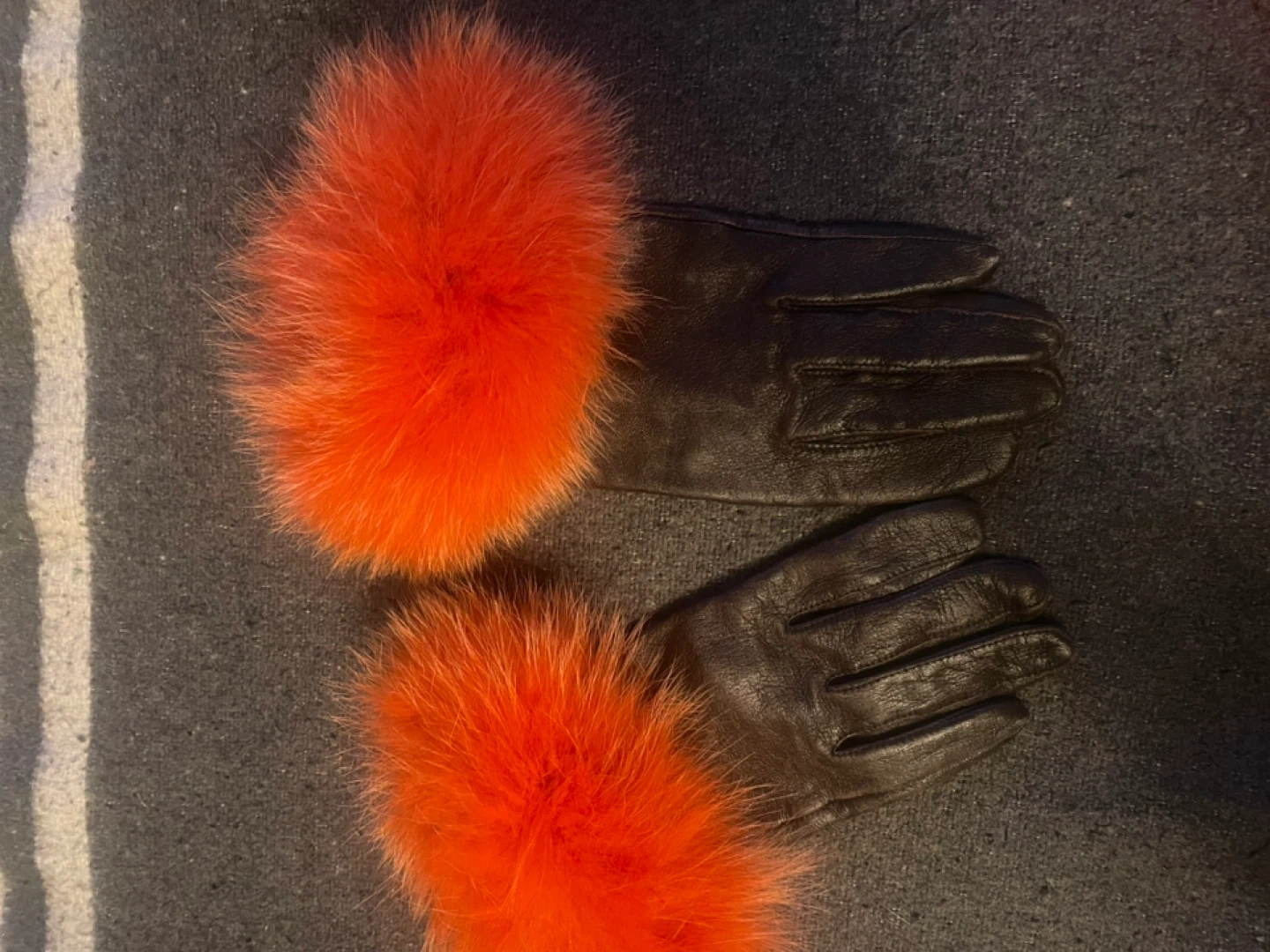 Brown Leather Gloves with Orange Fur Trim
