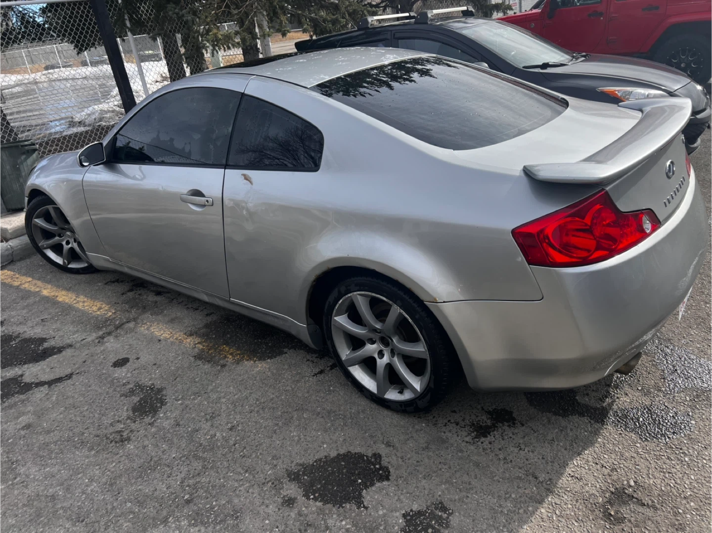 Buy & SellInfiniti G35 CoupeInfiniti G35 Coupe$4,422Silver Infiniti G35 Coupe with a V6 engine. Black leather interior. Perfect for a sportier drive!ConditionGoodWHERE TO MEETCheck LocationView MapSELLERHunterRundle150 reviews0 chats·2 favorites·208 viewsSEND CHAT TO SELLERHi Hunter! I’m interested in your listing.Hi Hunter! I’m interested in your listing.Get the Karrot app to chatSign In to chat