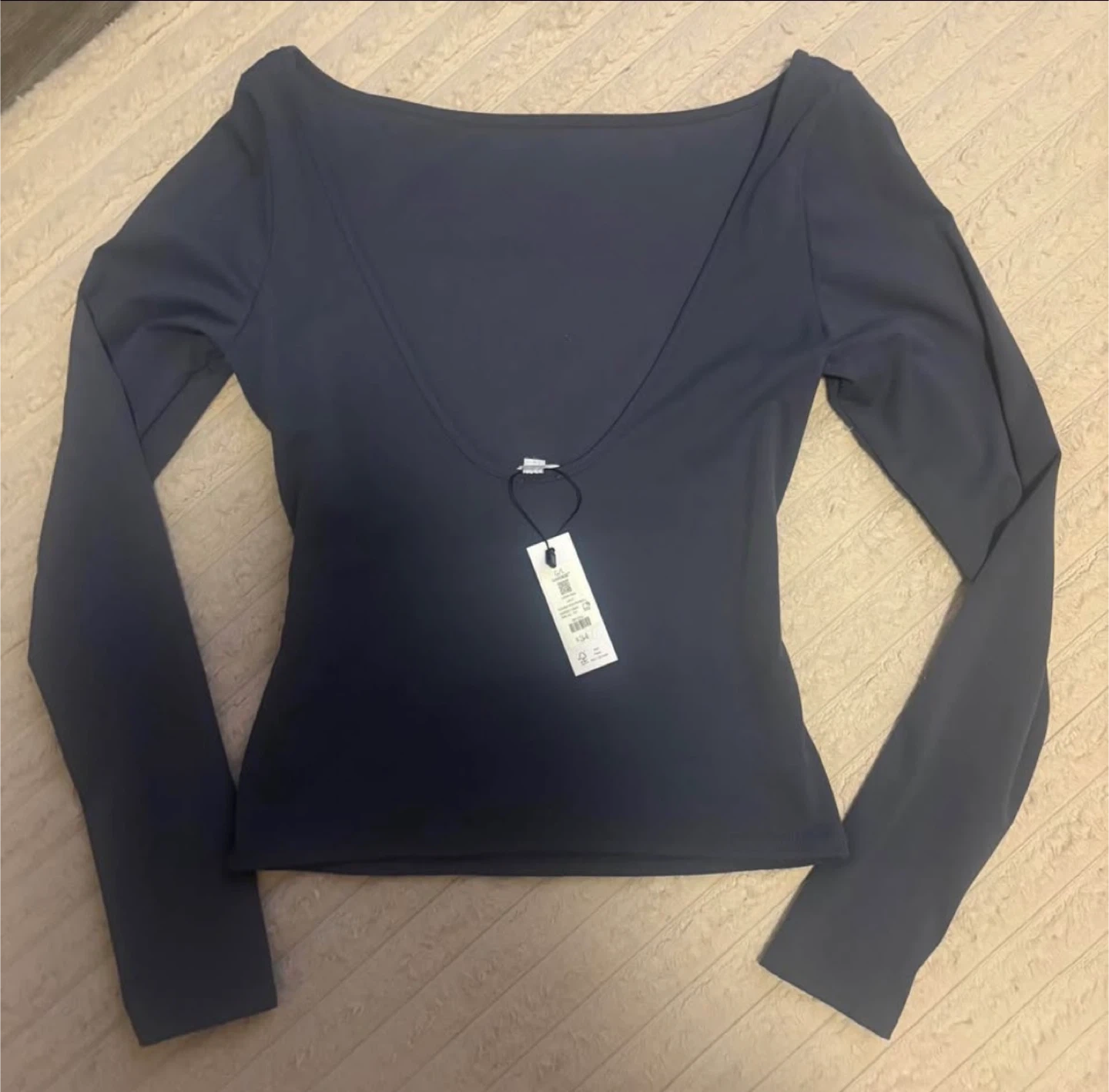 This is a long sleeve boatneck top from Garage in Odyssey Gray. It's a size L and features an open back design. It’s brand new with tags and originally bought for $35.
