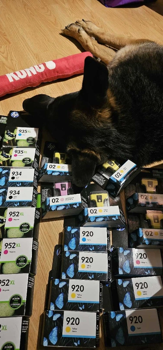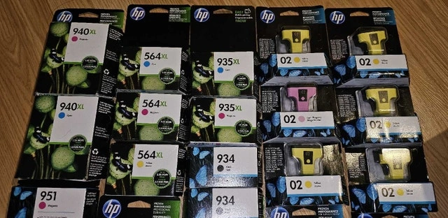 Selling genuine HP ink cartridges. All are new, sealed in original boxes, and are old stock (expired but tested with perfect results). Take all 35 remaining cartridges for $100, or buy individually: