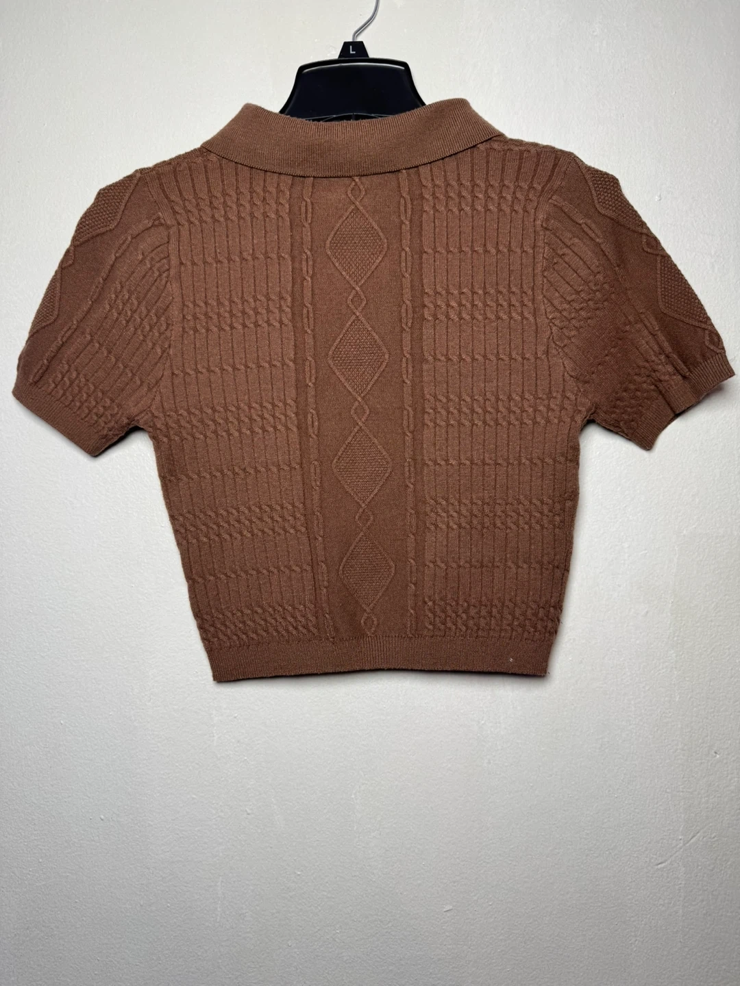 Daisy Brown Knit Collared Short Sleeve Shirt Size L