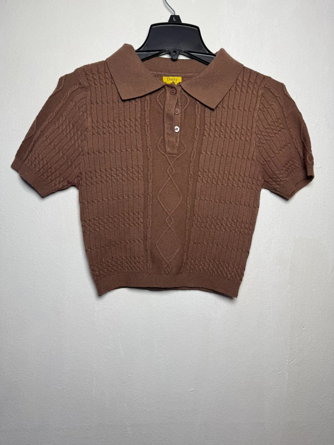 Daisy Brown Knit Collared Short Sleeve Shirt Size L