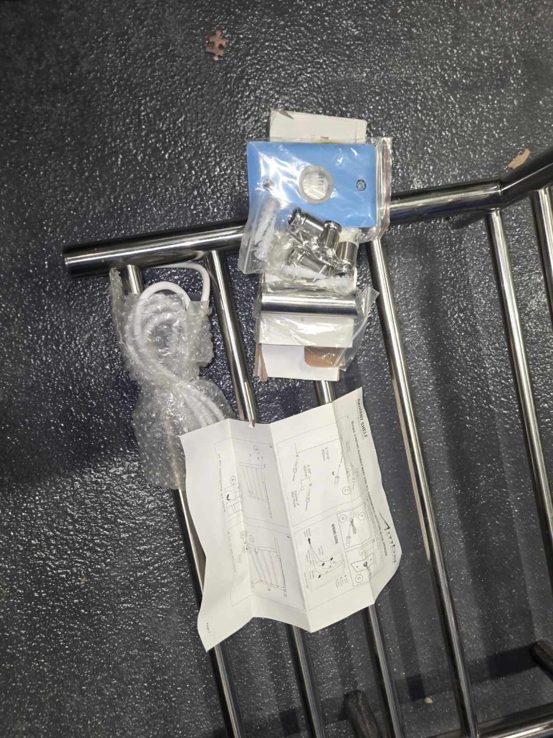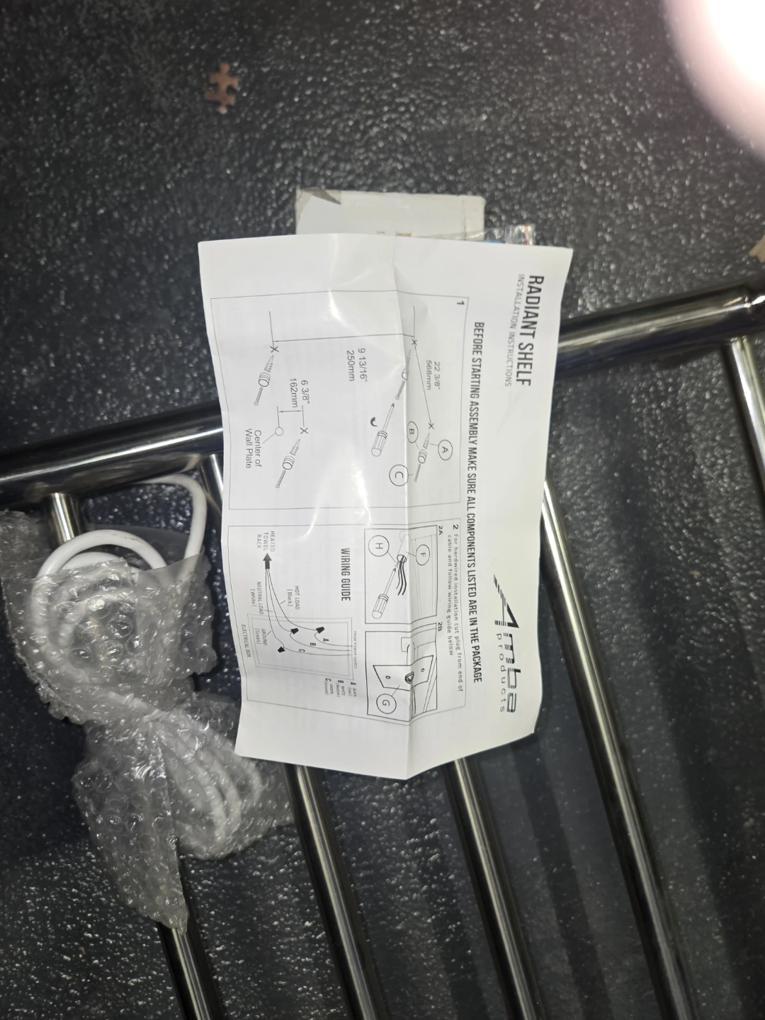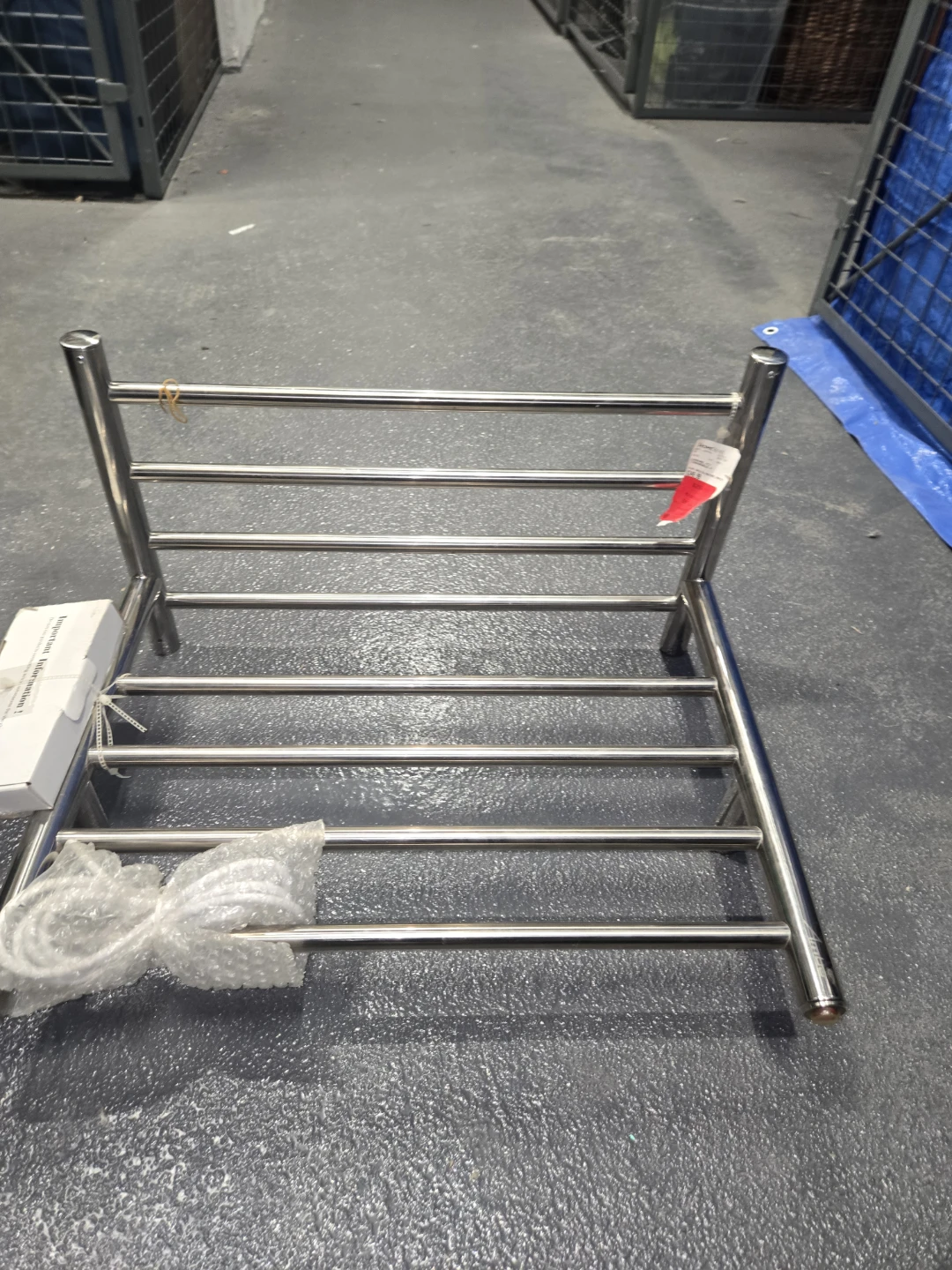 This is a new Amba Radiant Shelf, a great addition to any bathroom. It's made of durable stainless steel. Includes all mounting hardware and installation instructions.