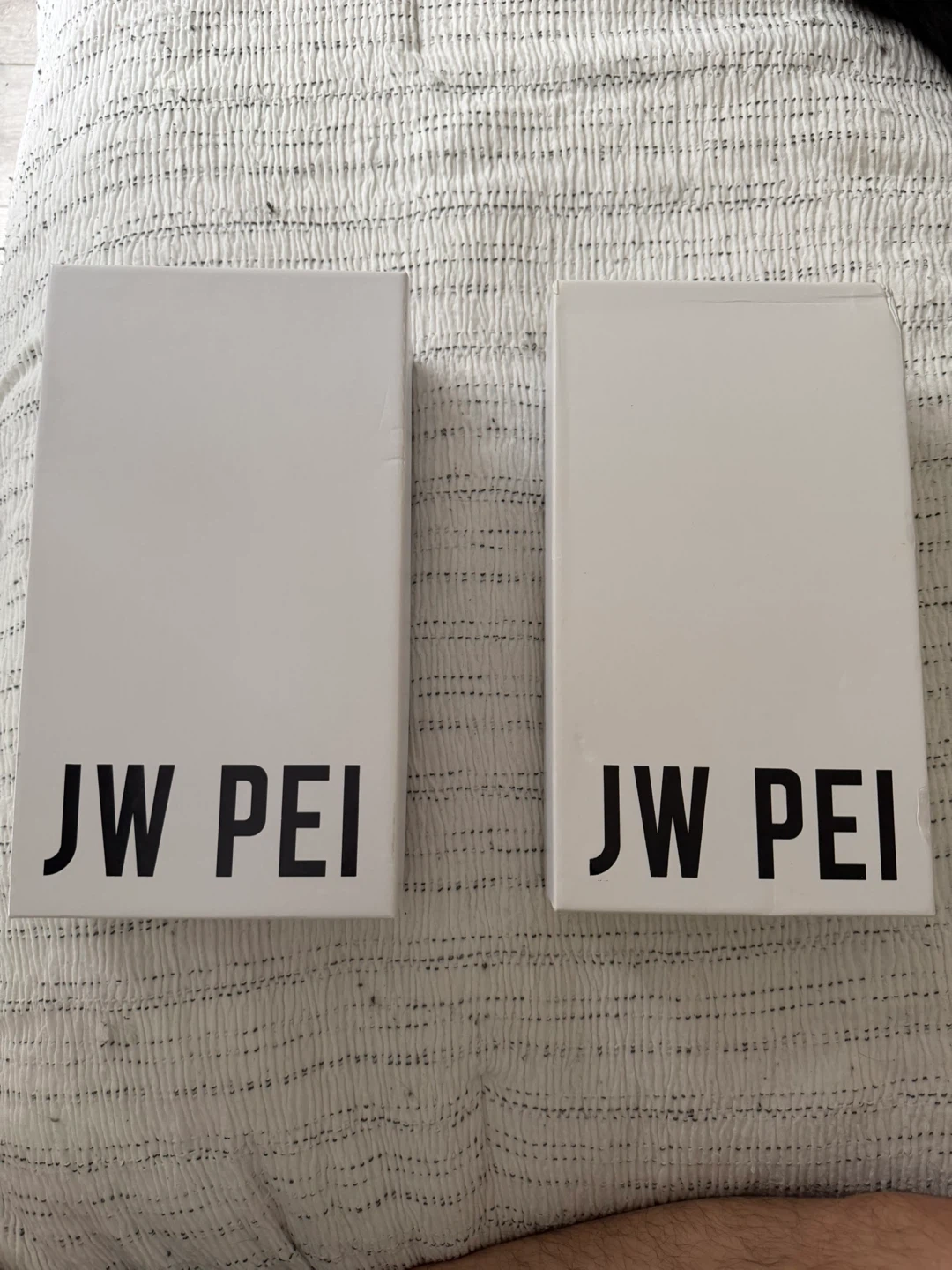Two JW Pei shoulder bags, one in black and one in cream. Includes original boxes and dust bags. Leather material. Never used