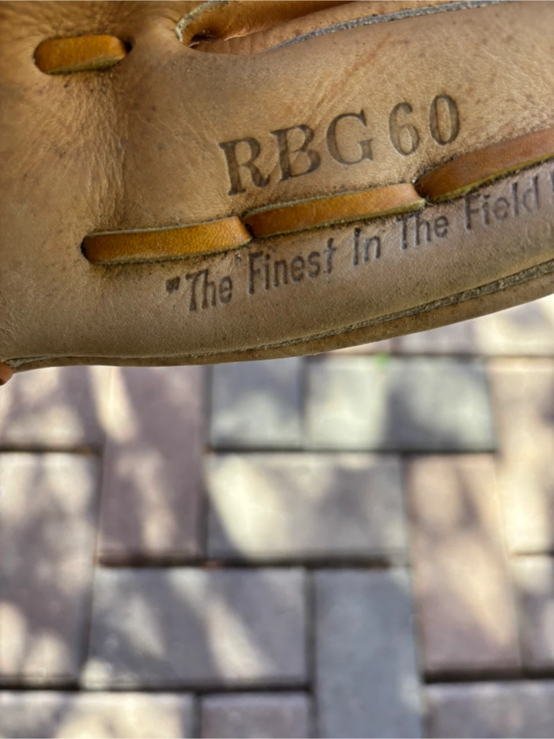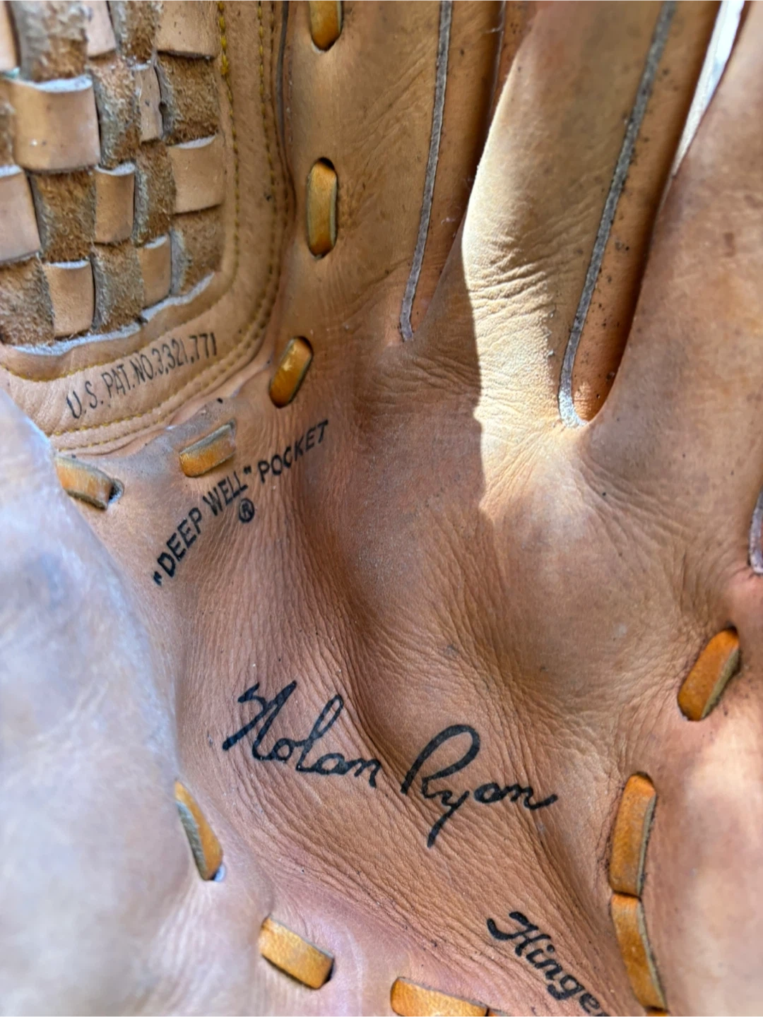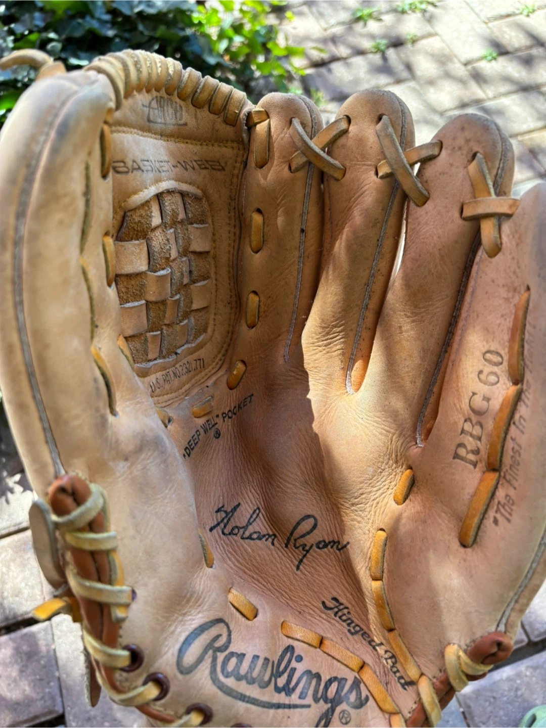 64Selling a used Rawlings RBG60 baseball glove. It has a basket-web and a deep well pocket. This glove is signed by Nolan Ryan. It's in good condition and ready for the field!