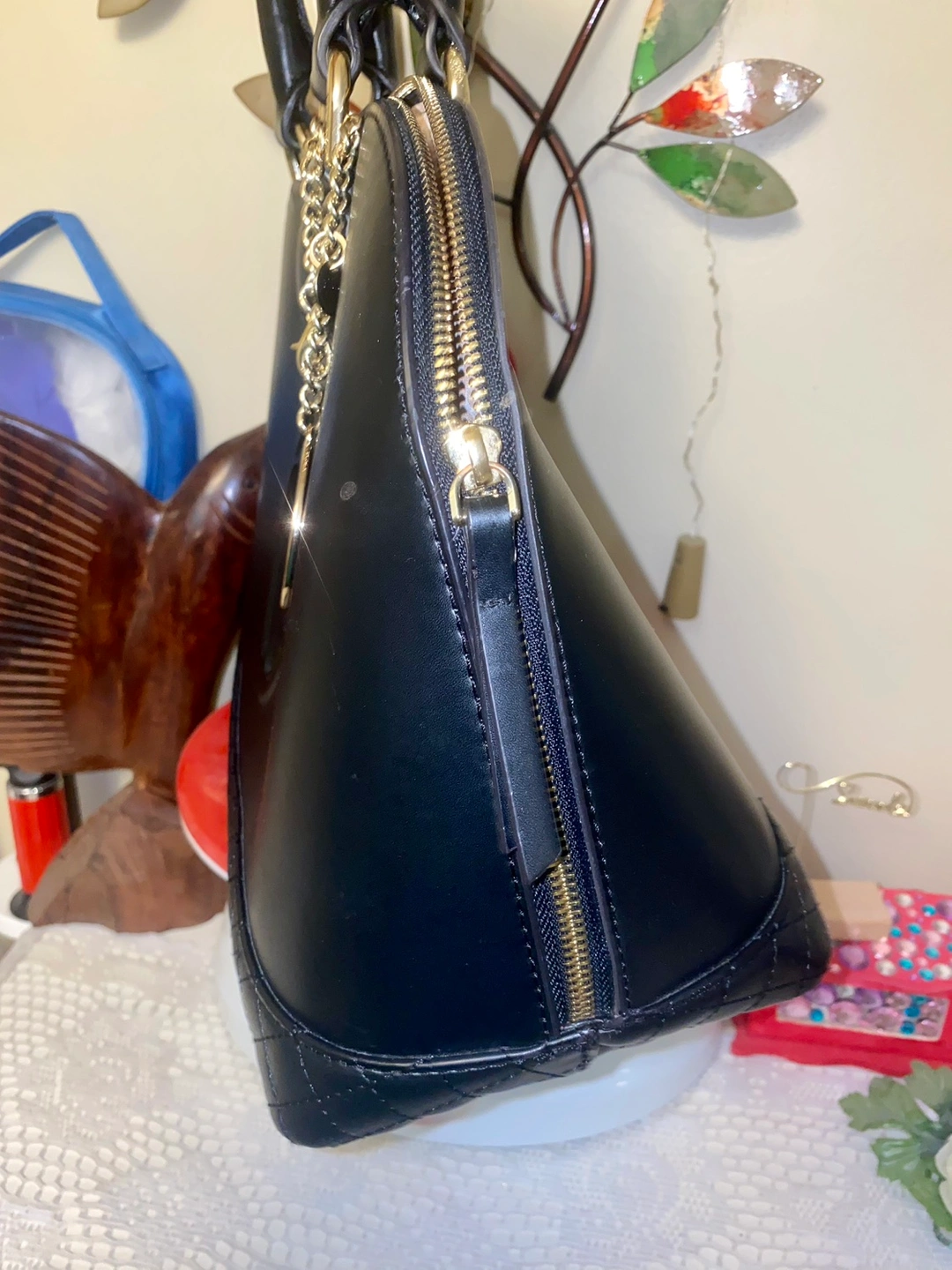 949This bag looks expensive ๐๐ Itโs a hand bag , not a shoulder bag There is not possible to attach a shoulder belt unfortunately Bag is new condition No scratches no damages at all