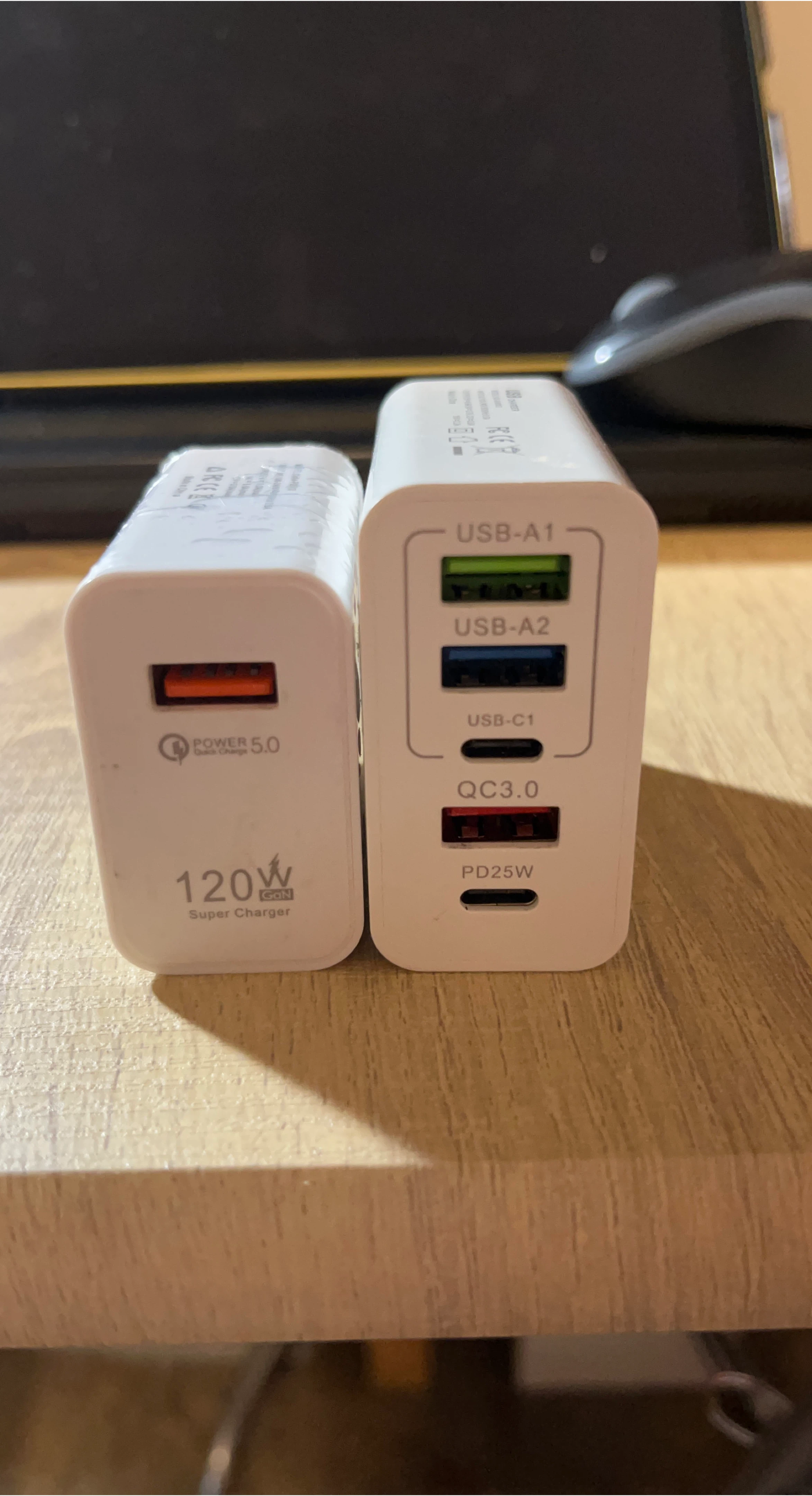 65Selling a 120W super charger! It features Power 5.0 Quick Charge and GaN technology. It also has multiple ports: USB-A1, USB-A2, USB-C1, QC3.0, and PD25W fixed price. no negotiation. pick up only. no delivery