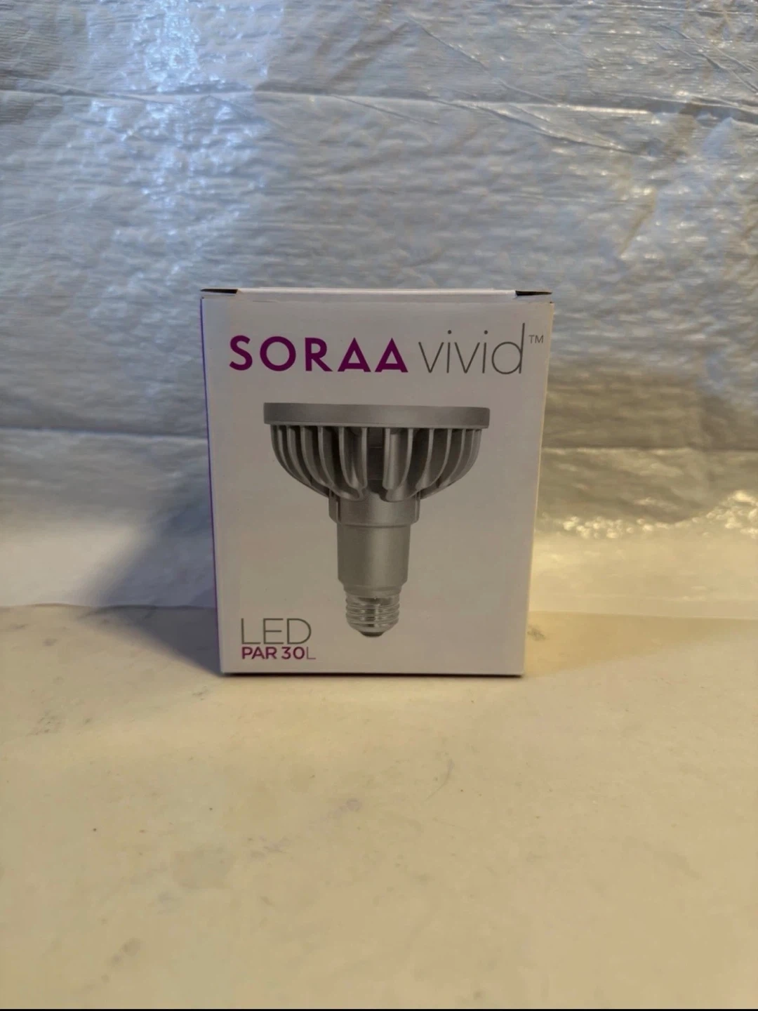 This is a Soraa Vivid LED PAR 30L light bulb. It's designed for superior light quality and energy efficiency. Includes original packaging.