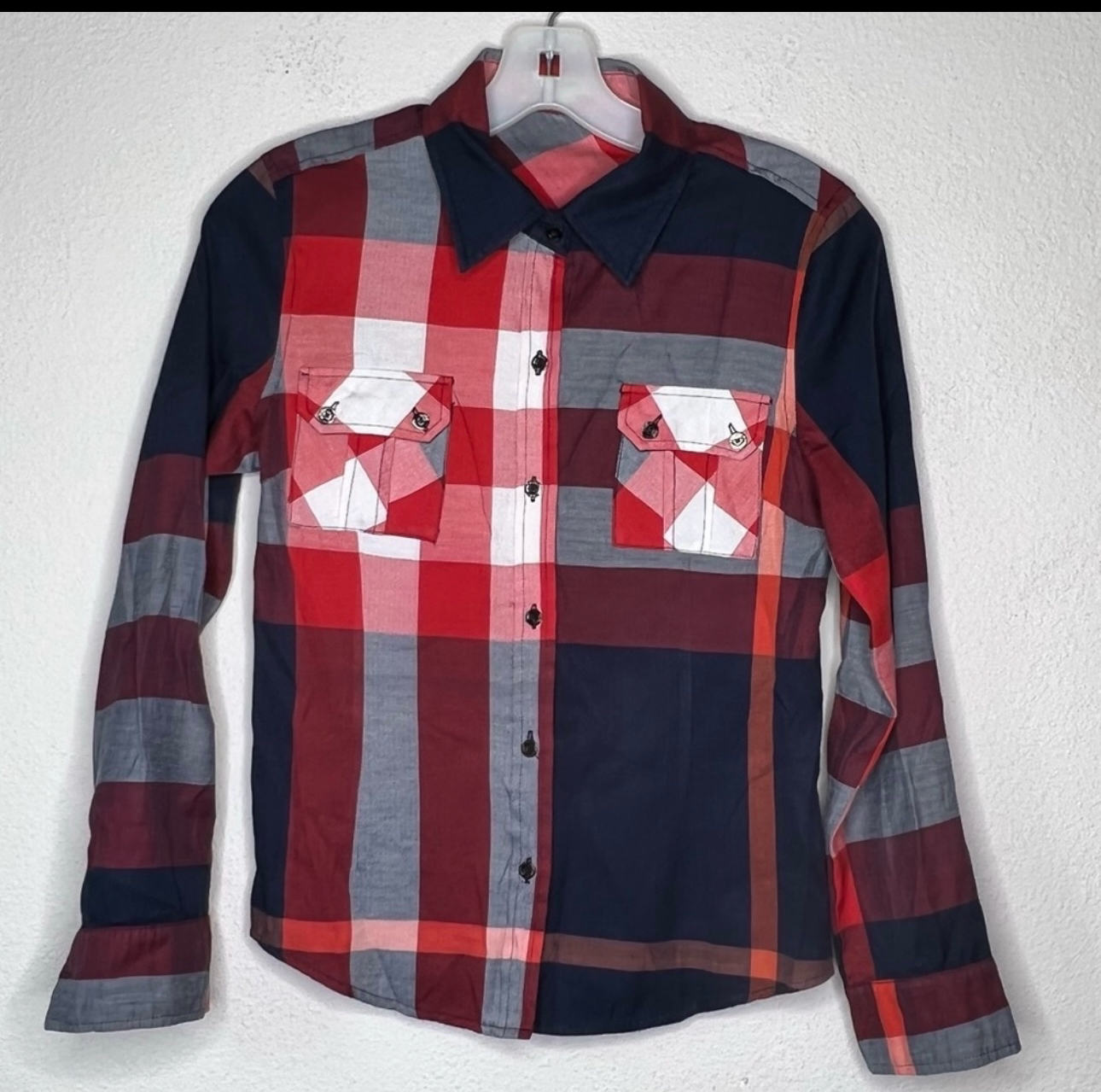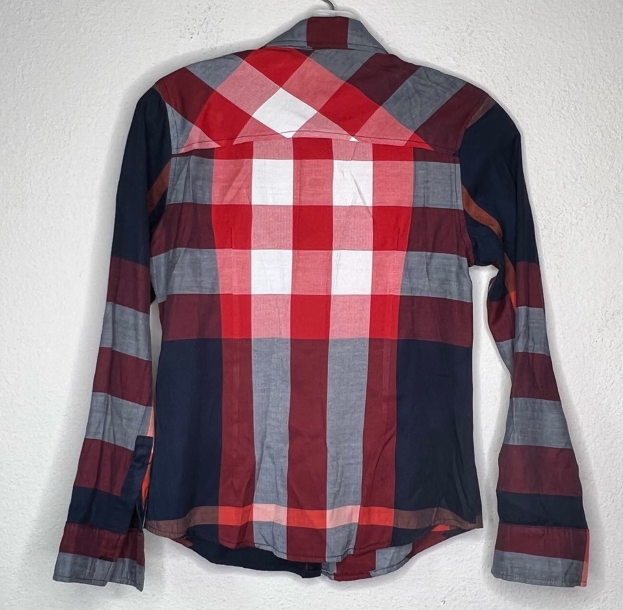 584Burberry Brit shirt. Pre-loved and in great condition. Size M but runs small. Feels more like an S for a relaxed fit. Measurements : Shoulder : 14”, Armpits : 17” Length : 21.5” Composition : 100% cotton. Made in Hong Kong.