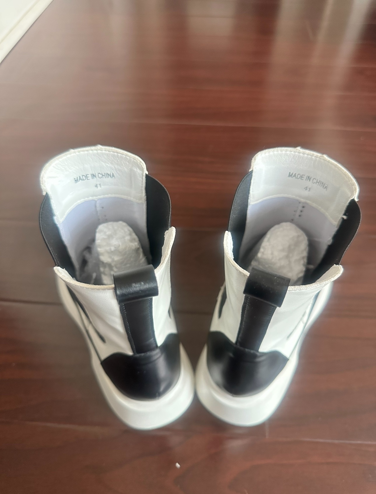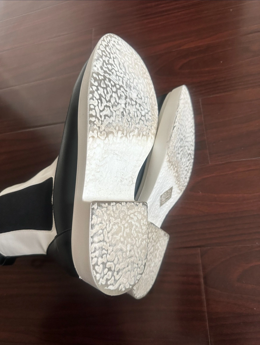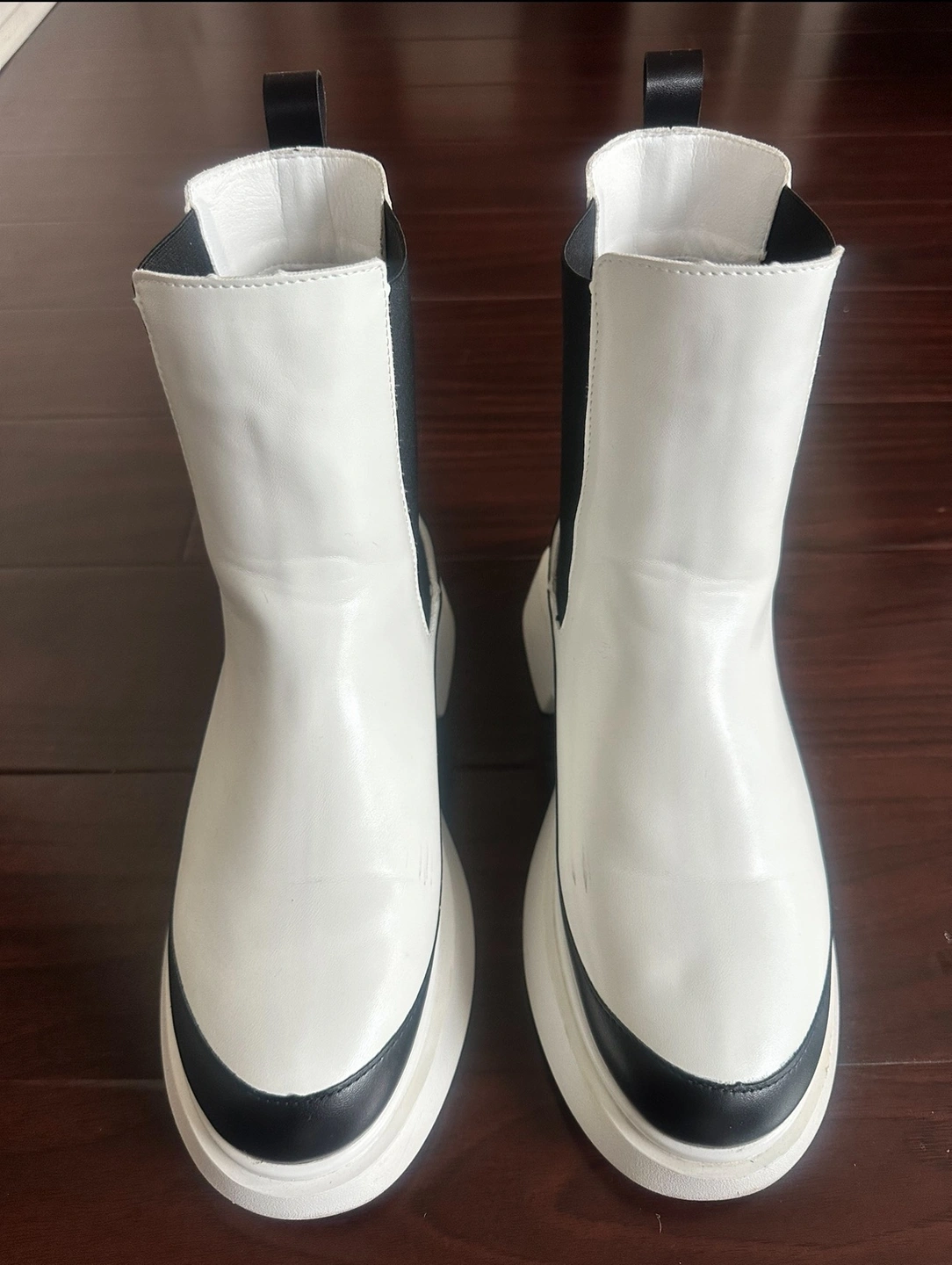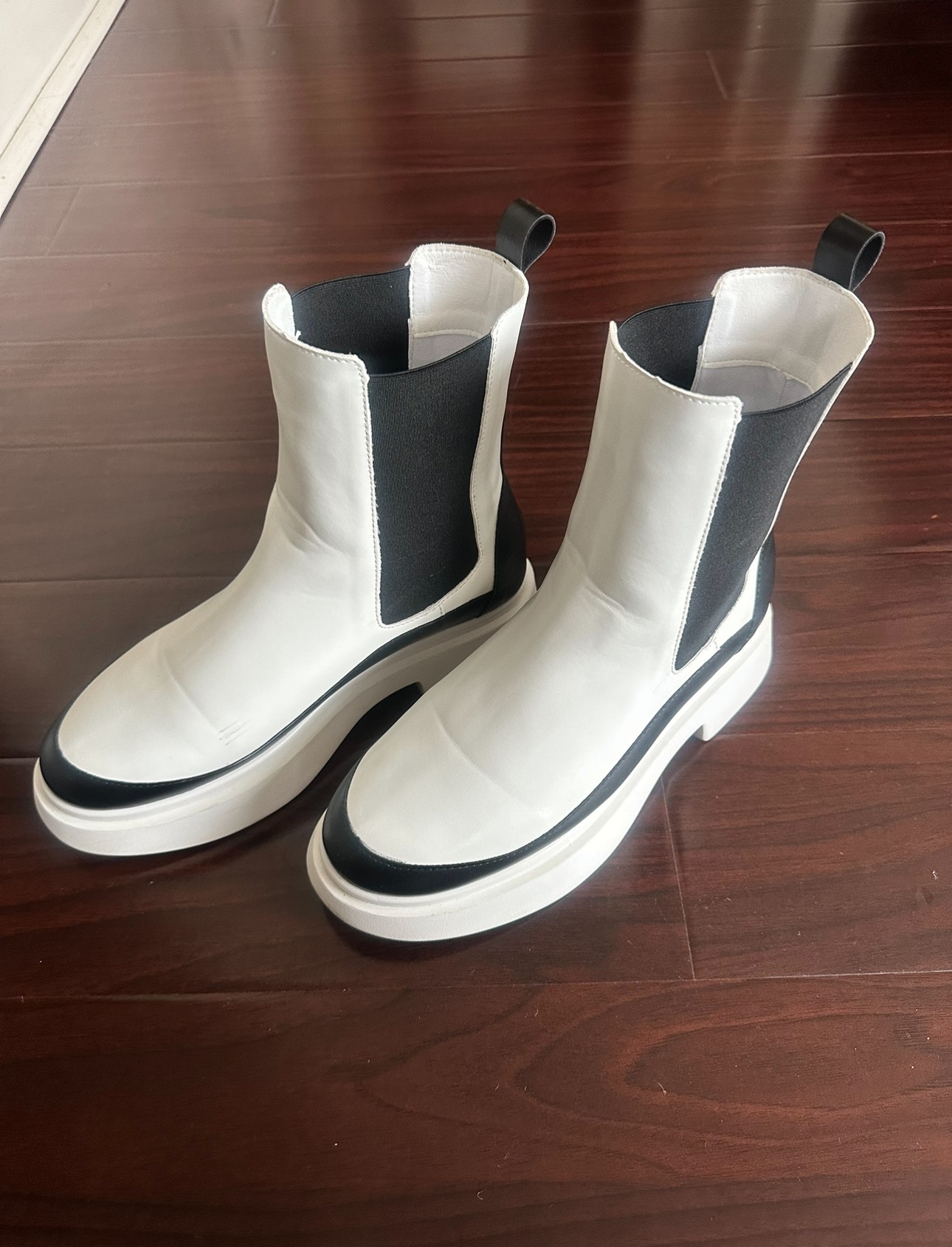 584Chelsea black and white boots microfiber materials yet so comfortable. Fit more like 40 or US 9.5