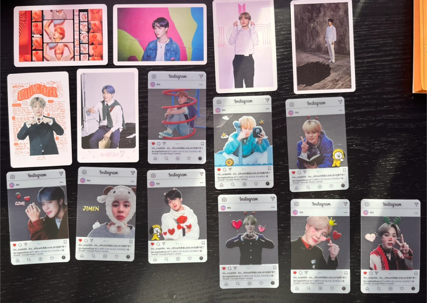 Collection of unofficial BTS photo cards. Selling each set individually or can be sold all together.