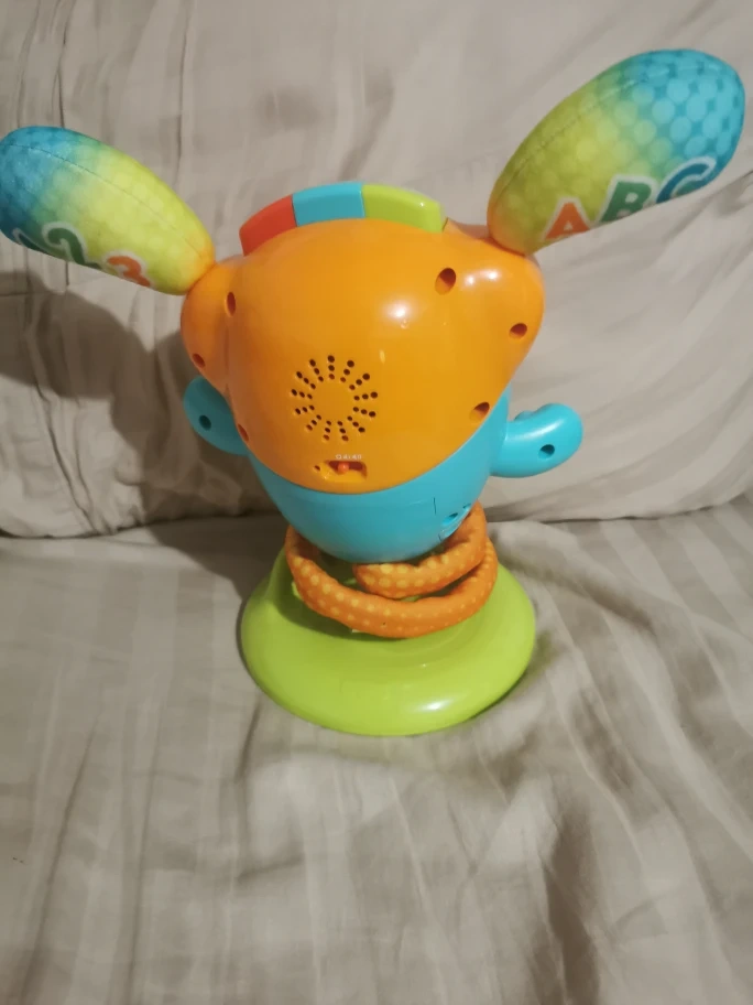 Play time’s a real party for your baby with the DJ Bouncin’ Beats musical learning toy from Fisher-Price. When little ones press the buttons, this interactive dance partner bounces to life with colorful lights, motorized spring action, and 75+ songs, sounds, and phrases that teach the alphabet, counting, colors, and more. With 3 Smart Stages levels and lots of exciting bouncing action, the DJ Bouncin’ Beats toy helps keep little dancers wiggling, giggling and learning as they grow.