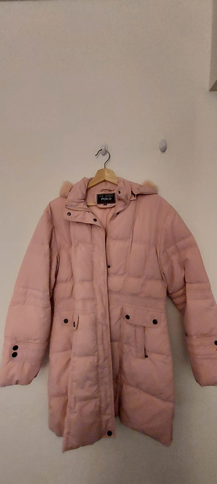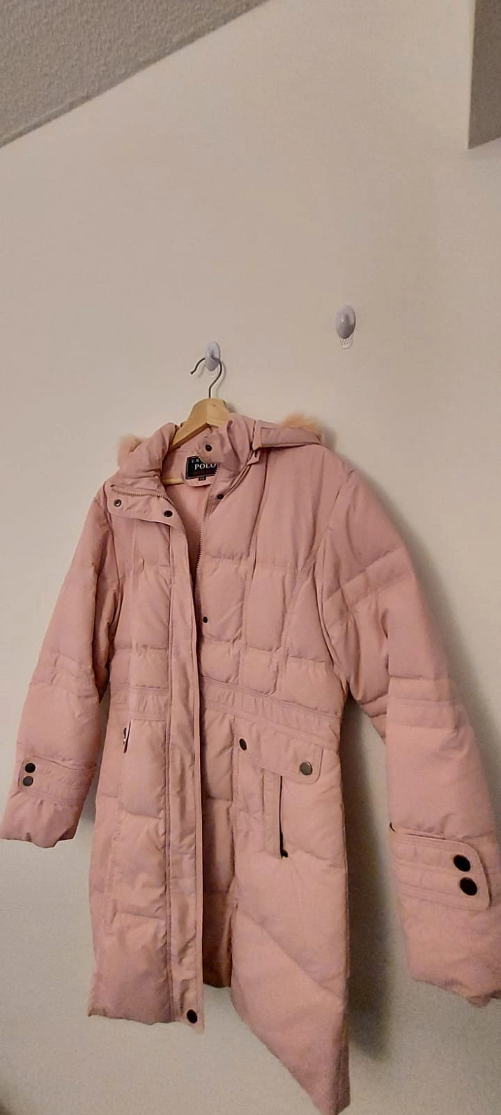 A pink long jacket with zipper in size S. The sleeves have cuffs that tightens around the wrist. It’s a light weight jacket with protection in temperatures from -10 to 5 degrees. Layer up or layer down for added warmth. Perfect for Toronto winters.