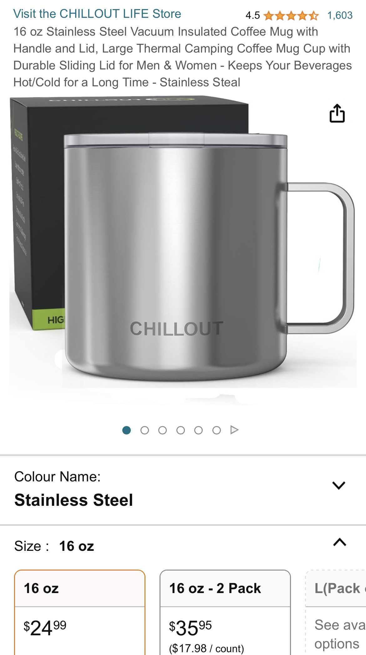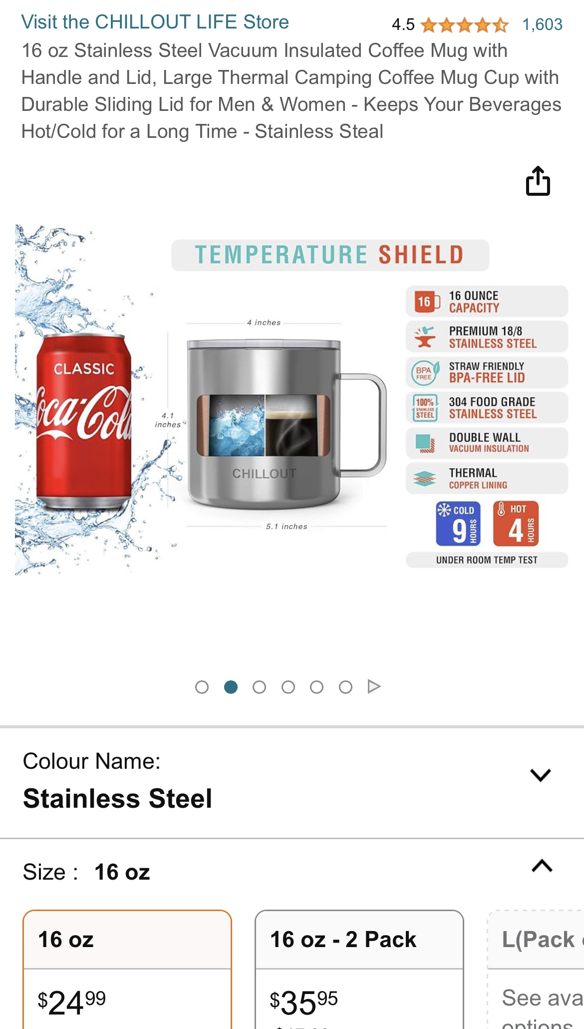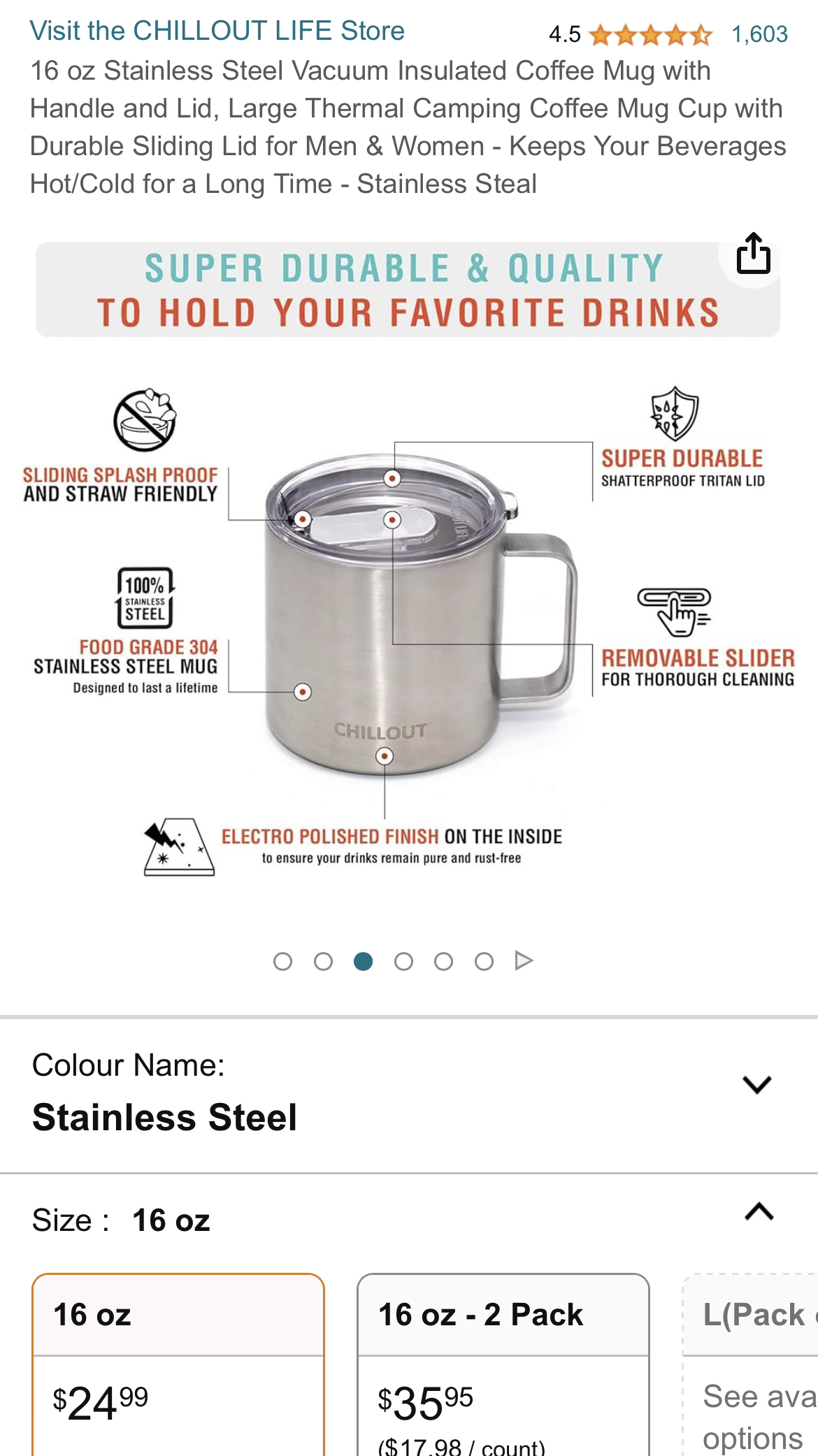 377Chillout 16 oz Stainless Steel Vacuum Insulated Coffee Mug with Handle and Lid, Large Thermal Camping Coffee Mug Cup with Durable Sliding Lid Good condition - some scratches at the edges Original brought for $28+ after tax π