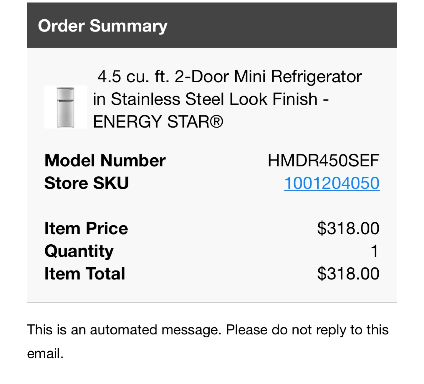 Selling this mini fridge because we moved and don't need it anymore. It's 4.5 cu. ft., and it's pretty spacious for a mini fridge. The freezer also comes in handy. It was bought on July 2023 for $318. It works perfectly well, with no marks or stains. Comes with small ice tray. Pick-up at Oakwood Village.