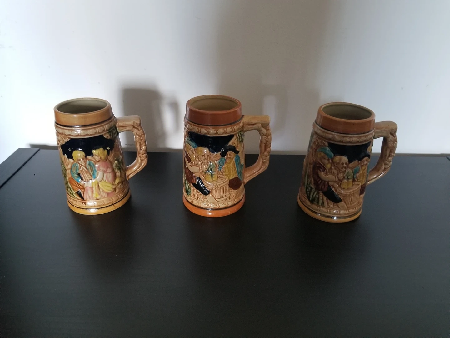 15Three ceramic beer mugs made in Japan. Nice decor.