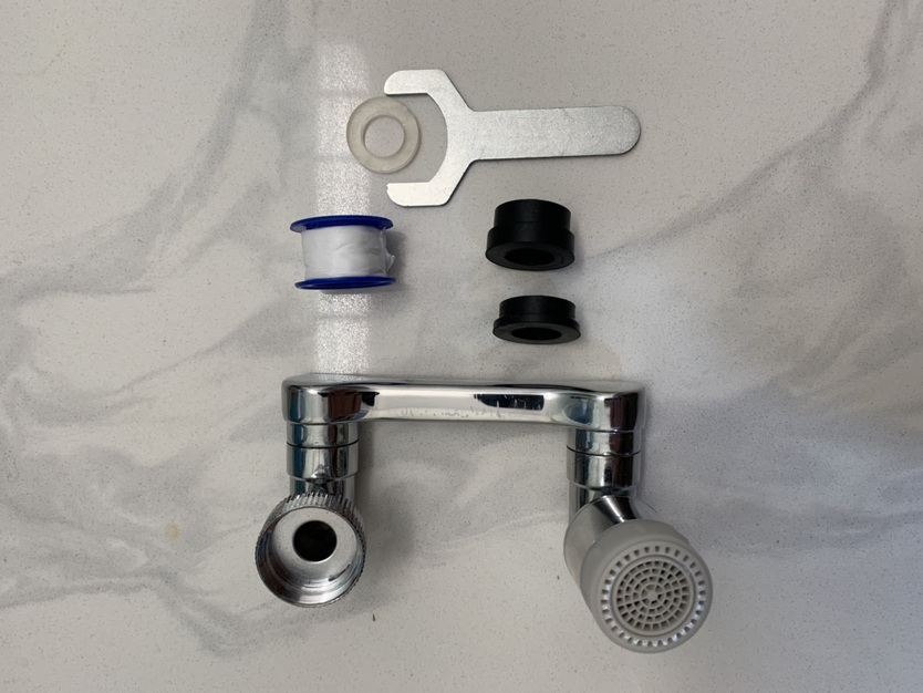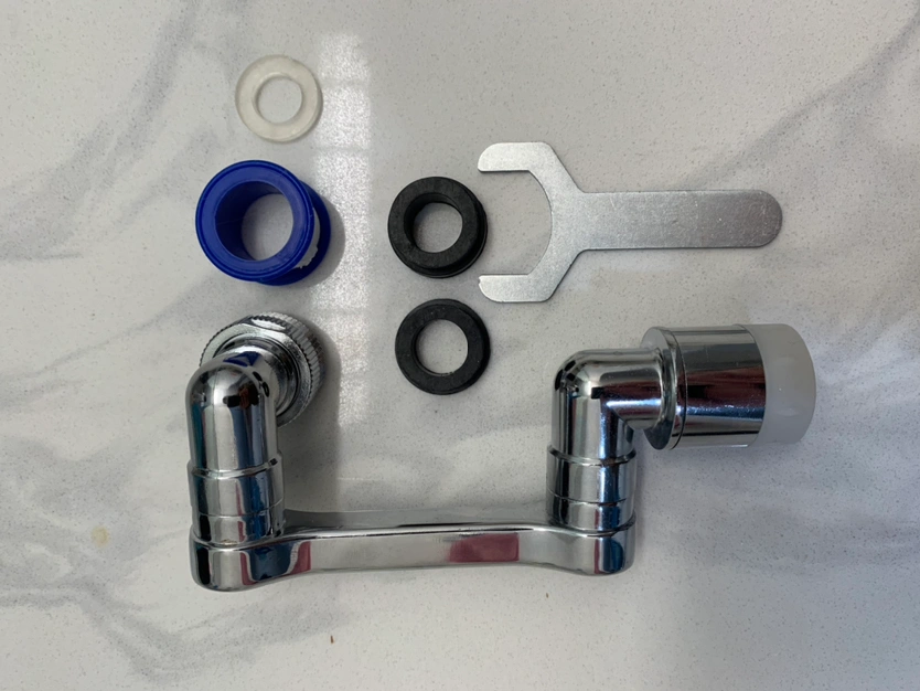 36Swivel faucet head 1080 degrees, adjustable dual water modes. Chrome finish, new never installed.