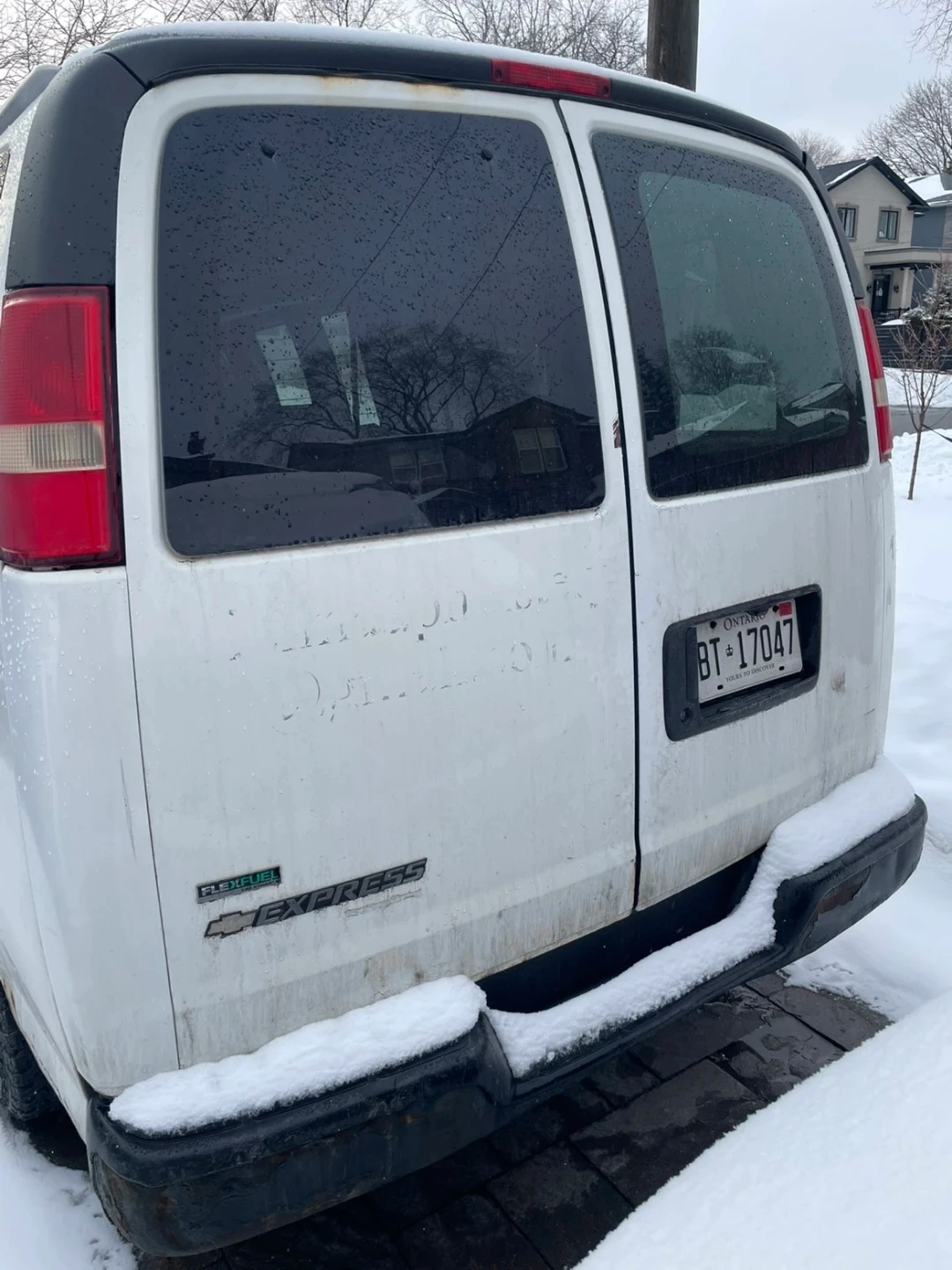 This is a white ford Express cargo van. It's a great option for hauling goods or equipment. The van is located in Ontario, Canada.