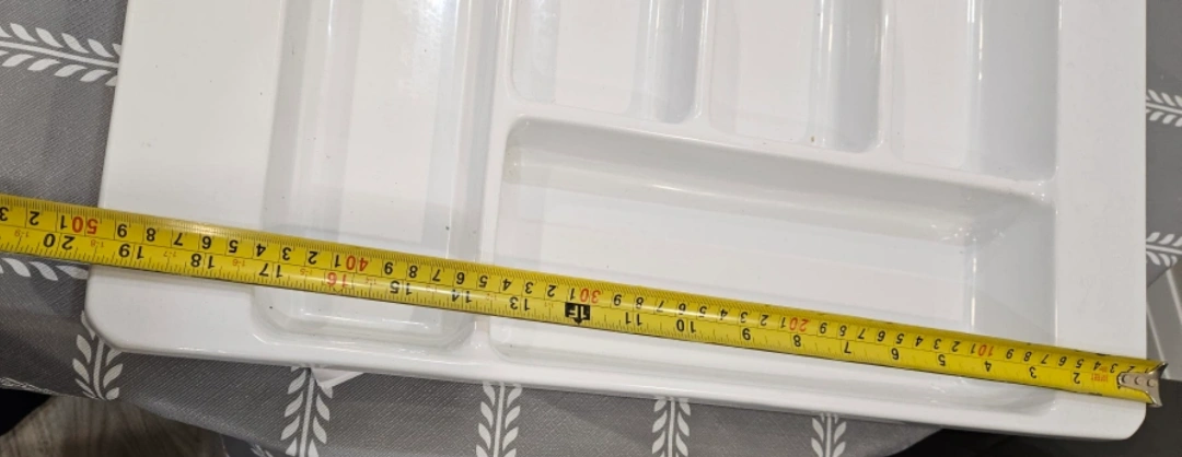 Extra large size cutlery tray organizer for customized kitchen drawers. See pictures for size. Good quality.