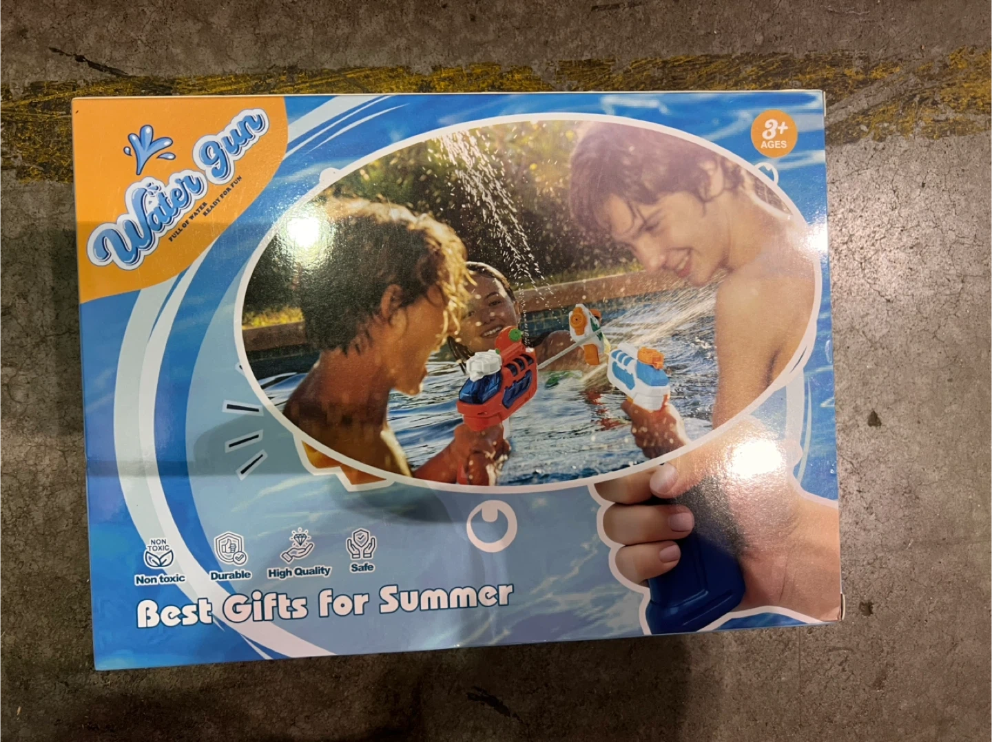 This water gun is designed for summer fun. It's durable and non-toxic. Perfect for kids 3+ years old to enjoy outdoor water play!