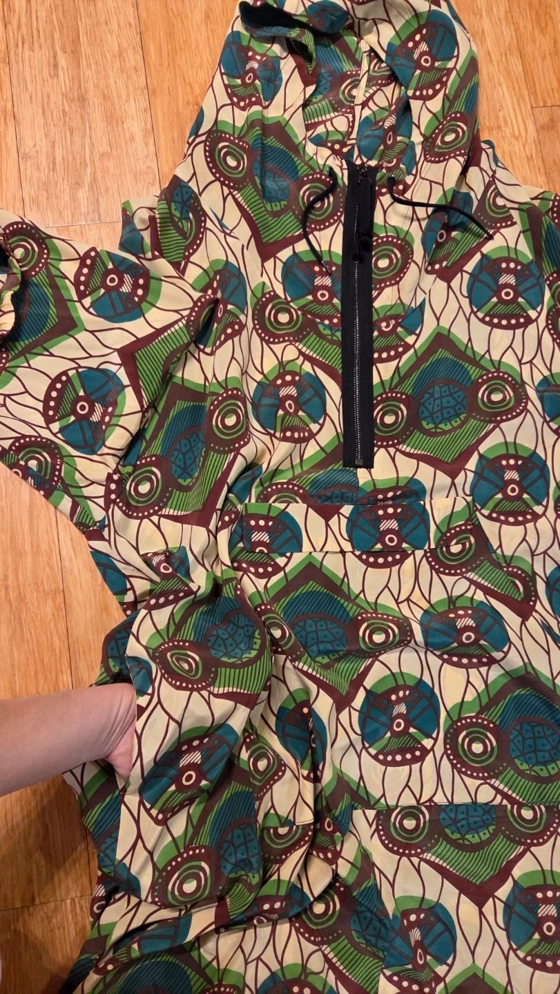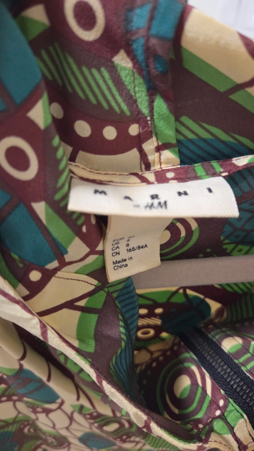 Selling a 100% silk Marni hooded jacket in size M. It features a unique and eye-catching pattern. The jacket is in great condition and perfect for adding a stylish touch to your wardrobe!