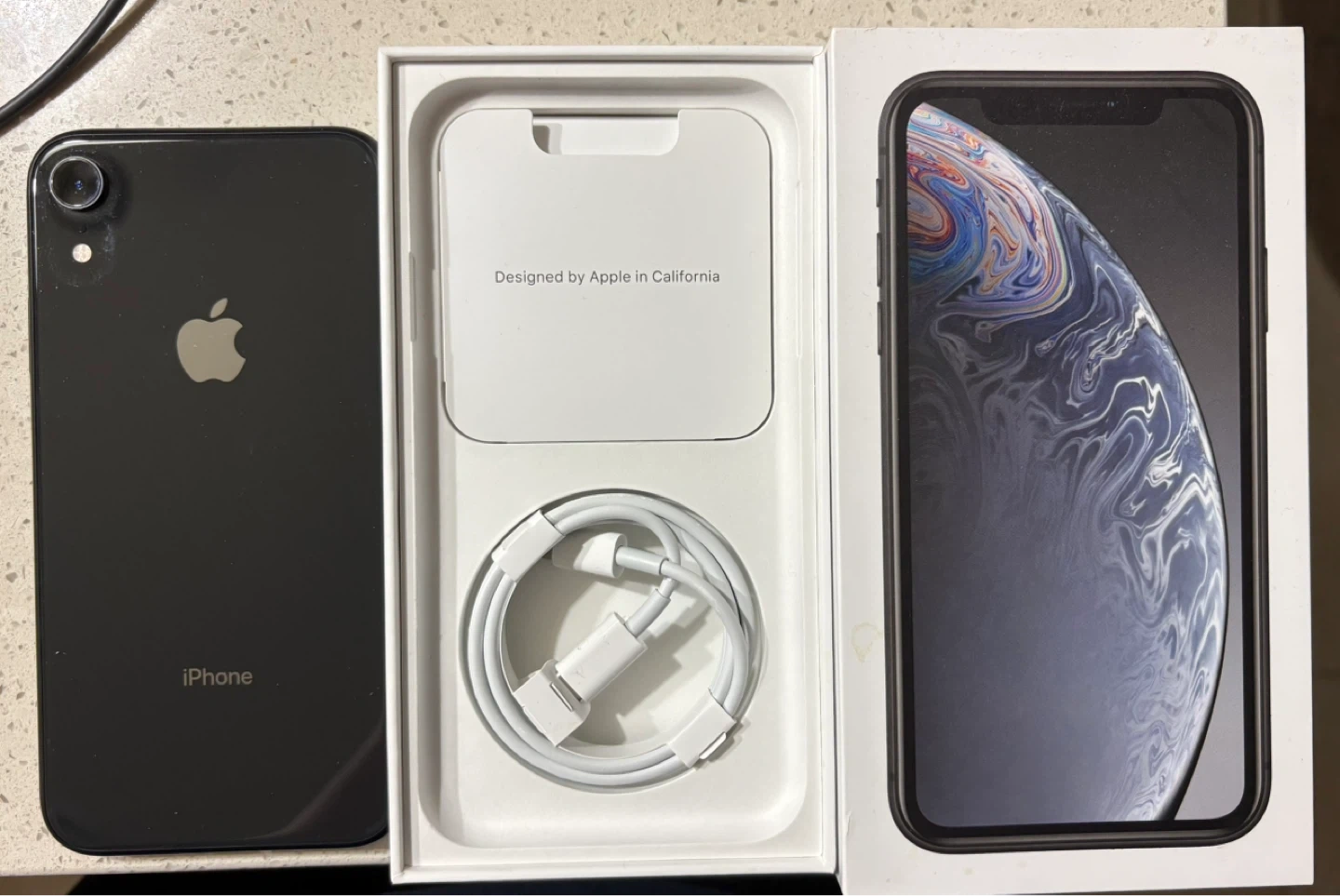 Black iPhone XR. Comes with original box and charging cable. Contains 64GB of storage. Works perfectly with no physical damage.