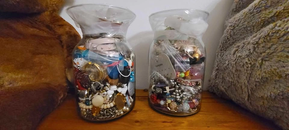 All new jewelry jars. Full of necklaces, earrings, bracelets and so much more. Fun to go through. All wearable, nothing broken. You never know what you'll find. Non smoking cat friendly house. Cash only. $40 each jar. Pickup in Dalhousie.