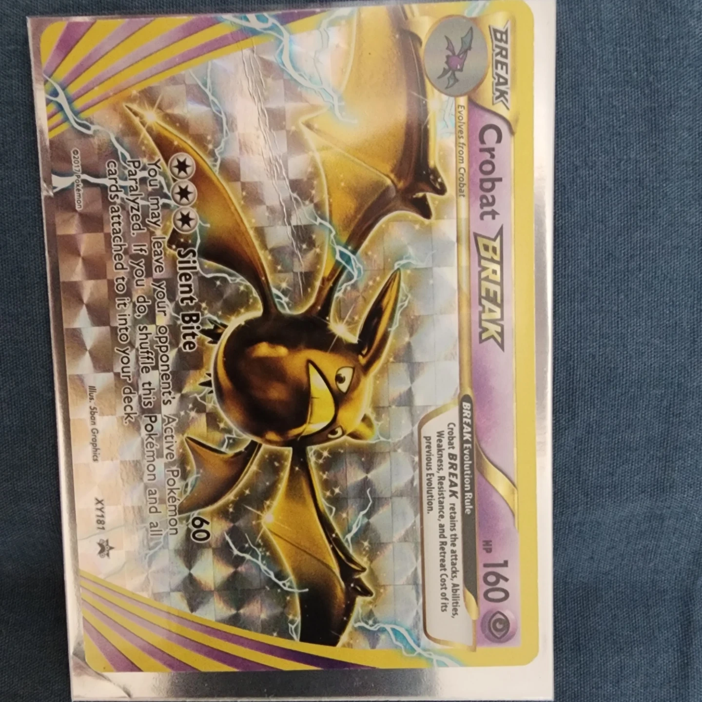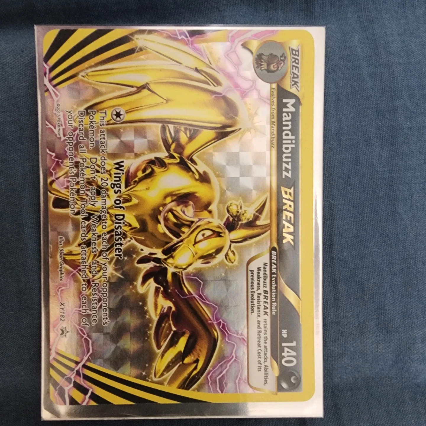 Includes Arcanine BREAK, Mandibuzz BREAK, and Crobat BREAK trading cards. These cards feature holographic, golden artwork. Suitable for Pokémon TCG collectors.