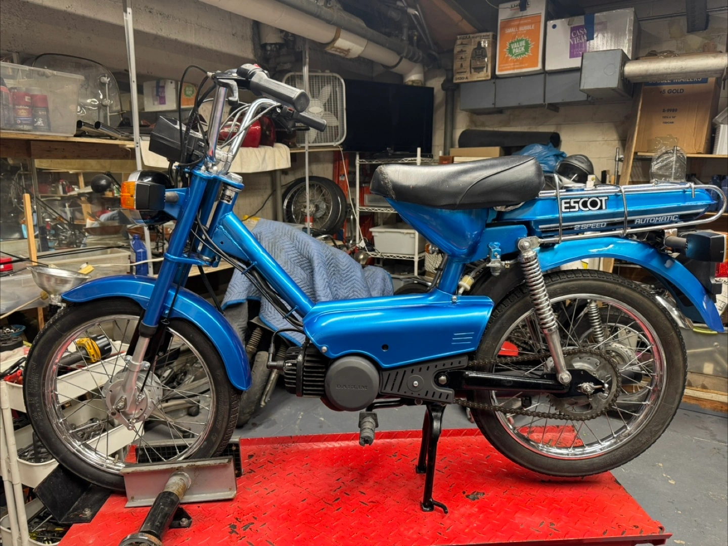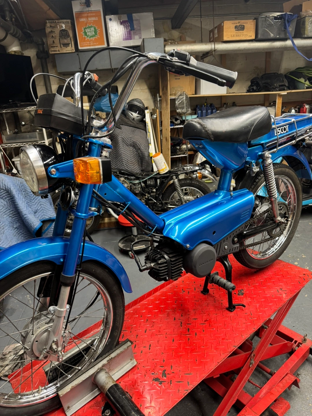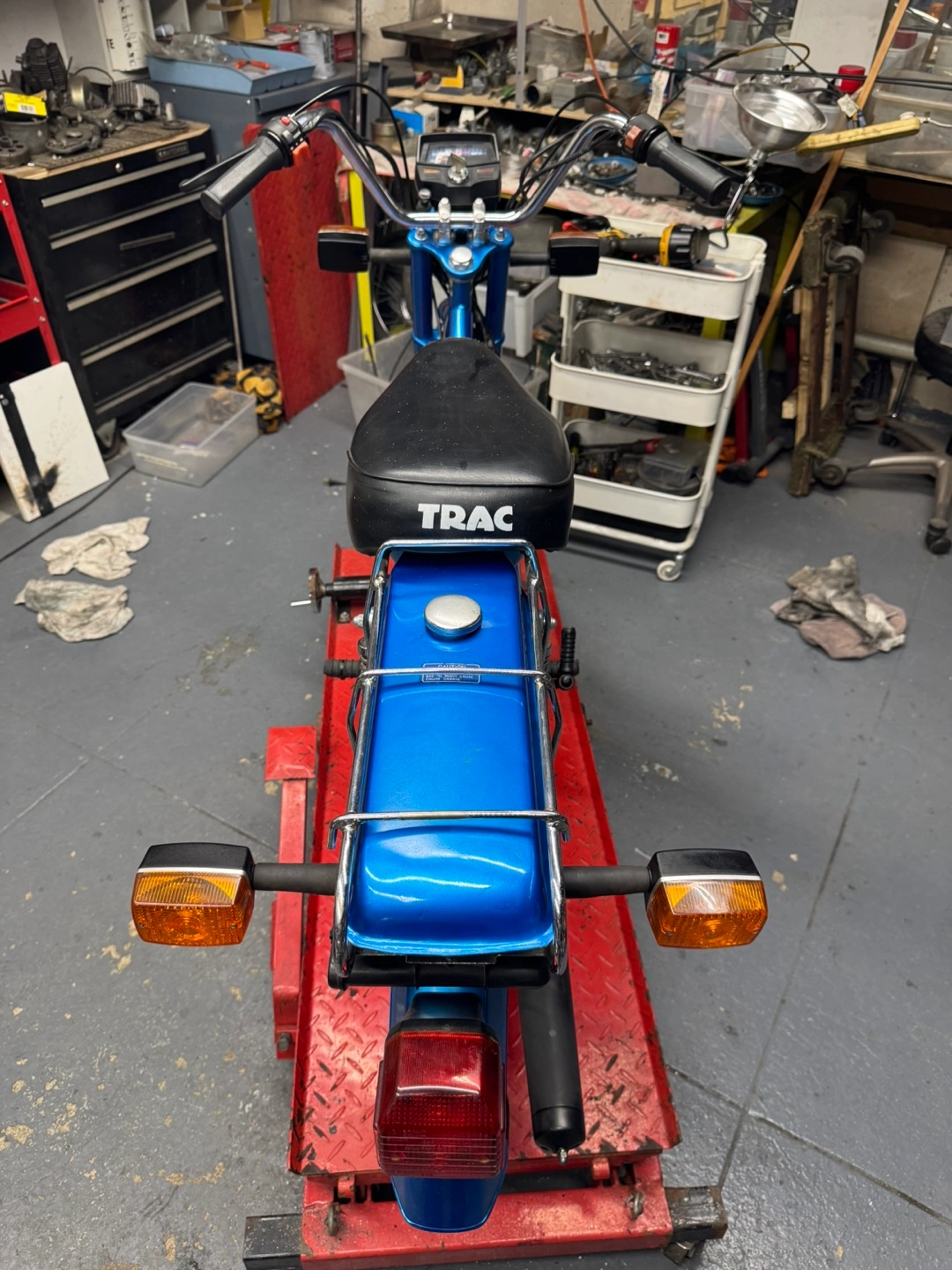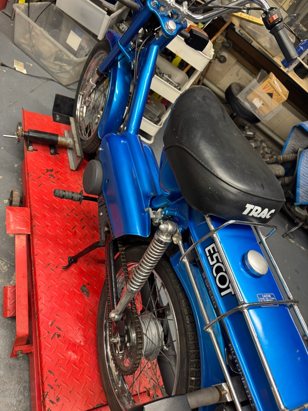 Selling a Trac Escot Automatic 2-Speed moped. It is blue and in good condition. If you are interested, please reach out!runs great like new
