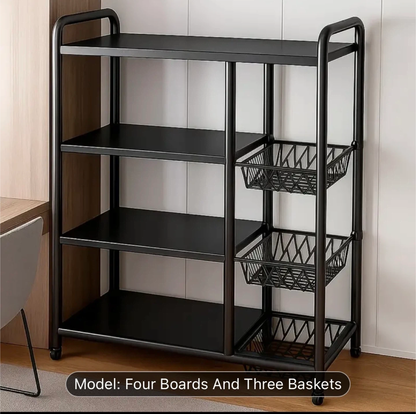 Four-Tiered Kitchen Storage Rack with Three Baskets