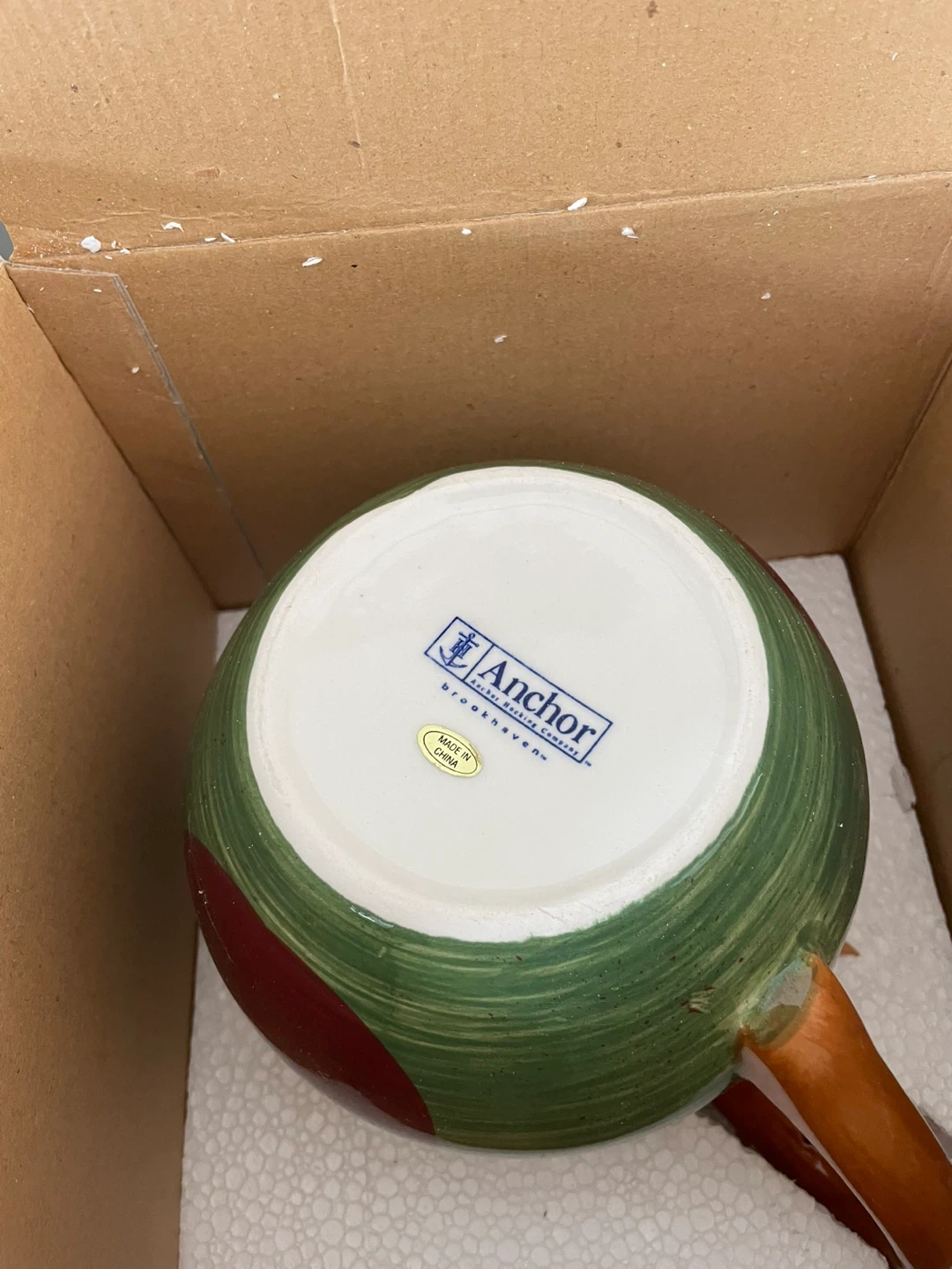 Features: Hand-painted glaze; large 2-liter capacity; sturdy ergonomic handle.