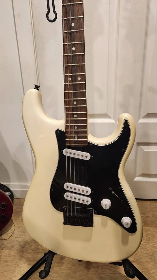 This guitar was built in 2021 with a roasted maple neck, poplar body, Indian laurel fretboard, black hardware, hardtail bridge, contoured heel, 3x Squier SQR alnico single-coils (SSS), and a 5-way blade switch with special series/parallel and hum-cancelling options. It retailed for $549 + tax new and is no longer produced.