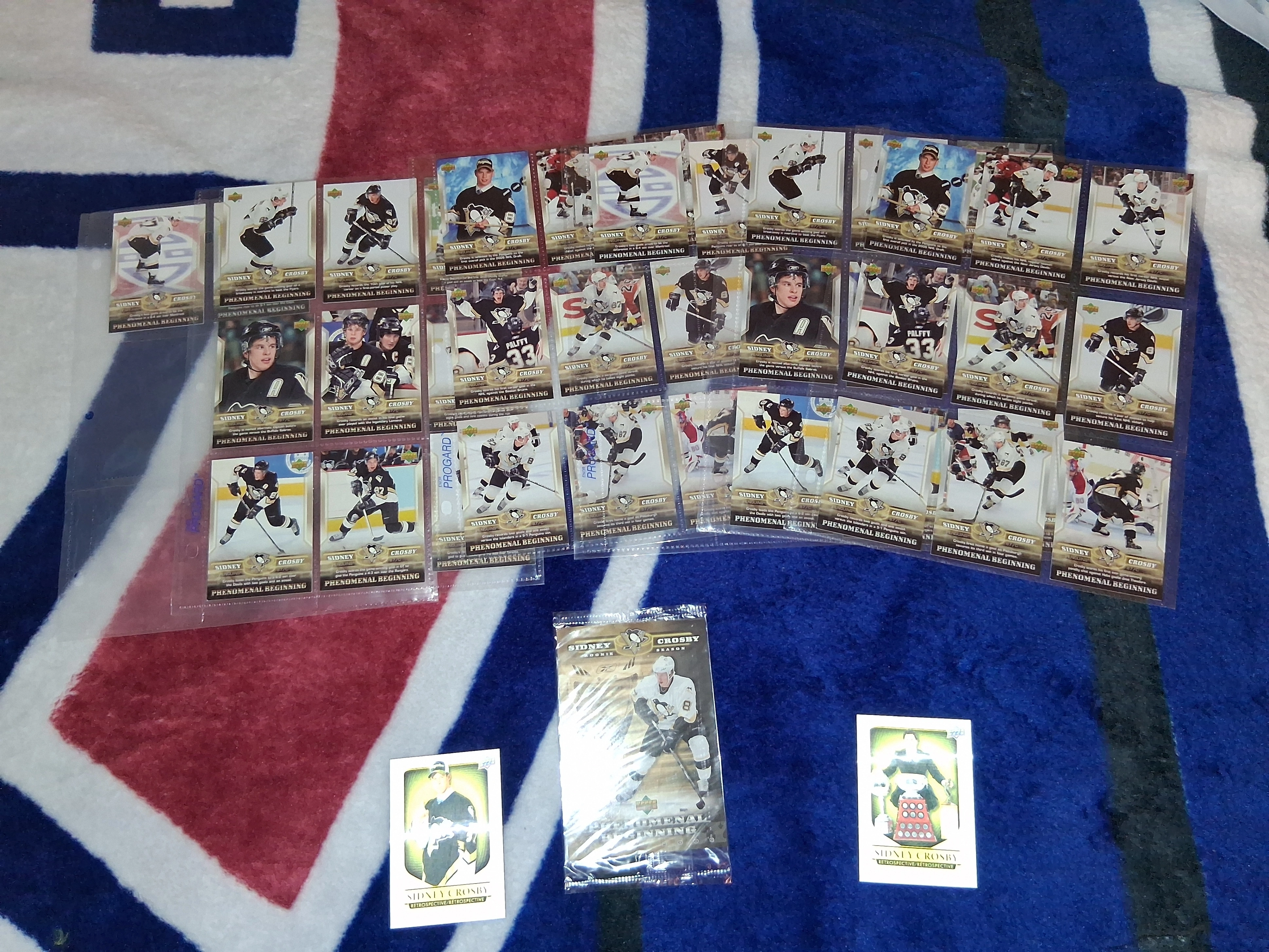 I am selling 2 MINT CONDITION 20 Card Sets of 2005-06 Sidney Crosby Phenomenal Beginnings Hockey cards, 1) 2005-06 Sidney Crosby Phenomenal Beginnings JUMBO Hockey Card Still sealed, and 2 MINT CONDITION TIM HORTON Sydney Crosby Retrospective Hockey Cards # SC-1 & SC-4.