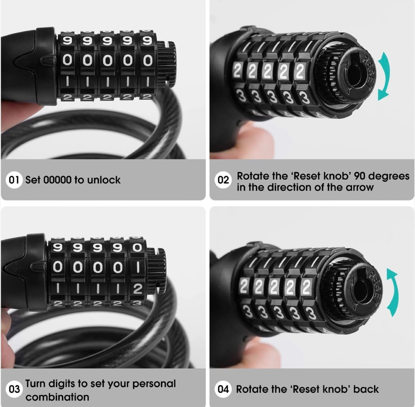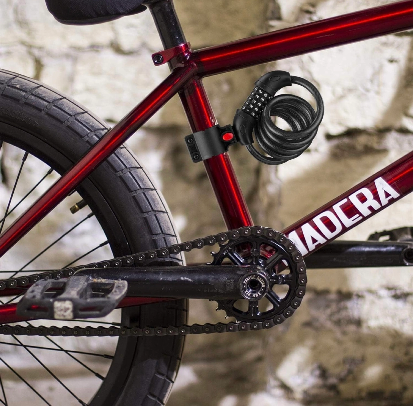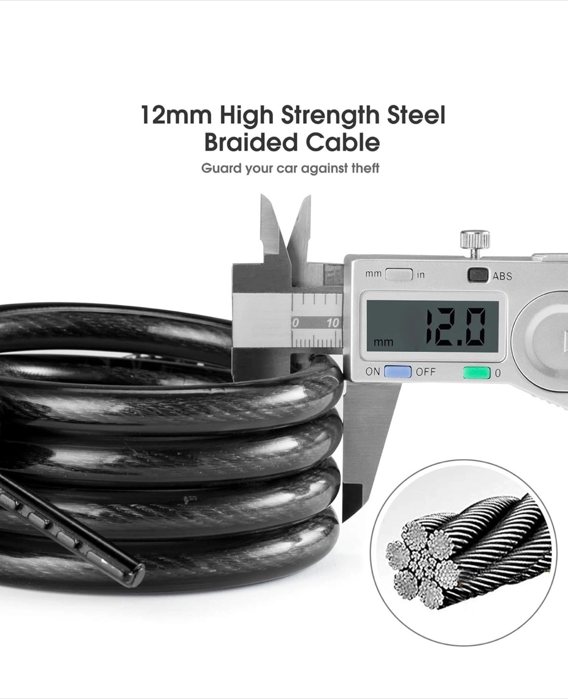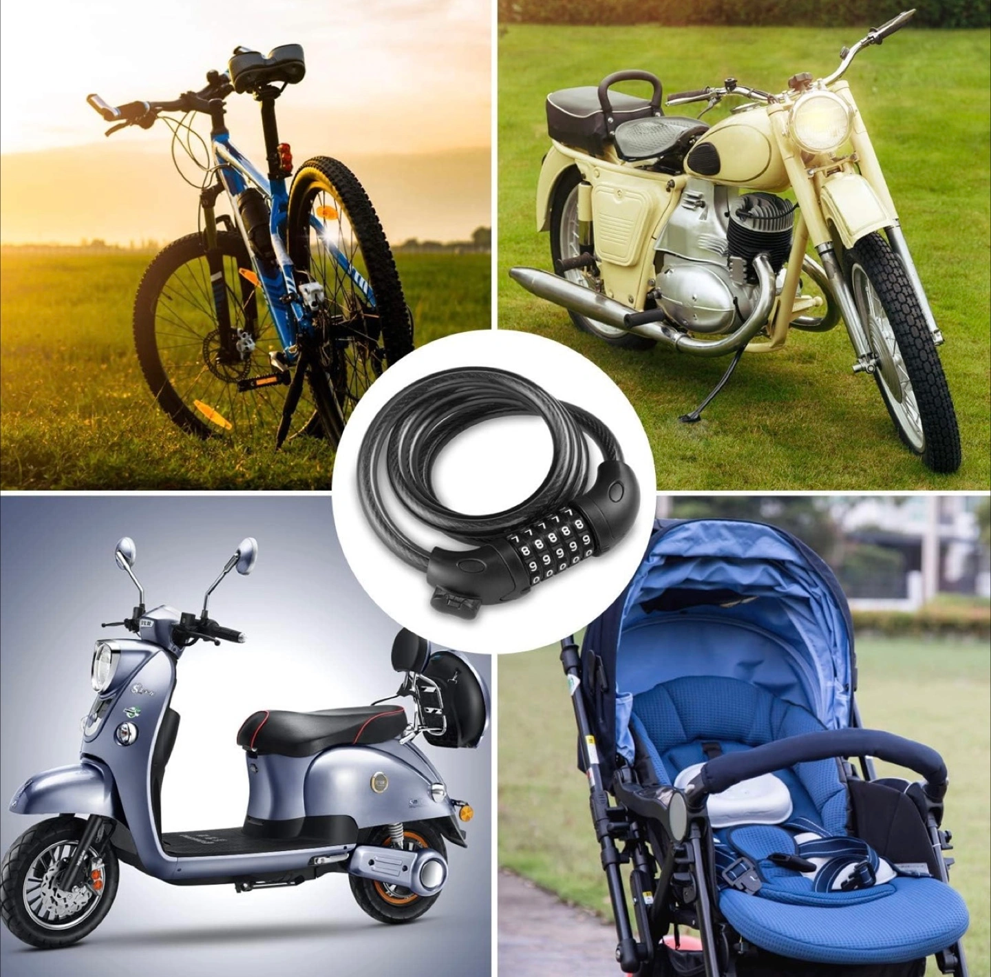 Heavy-duty bike lock. 12mm braided steel cable. Combination lock. Secure your bike, scooter, or other valuables.