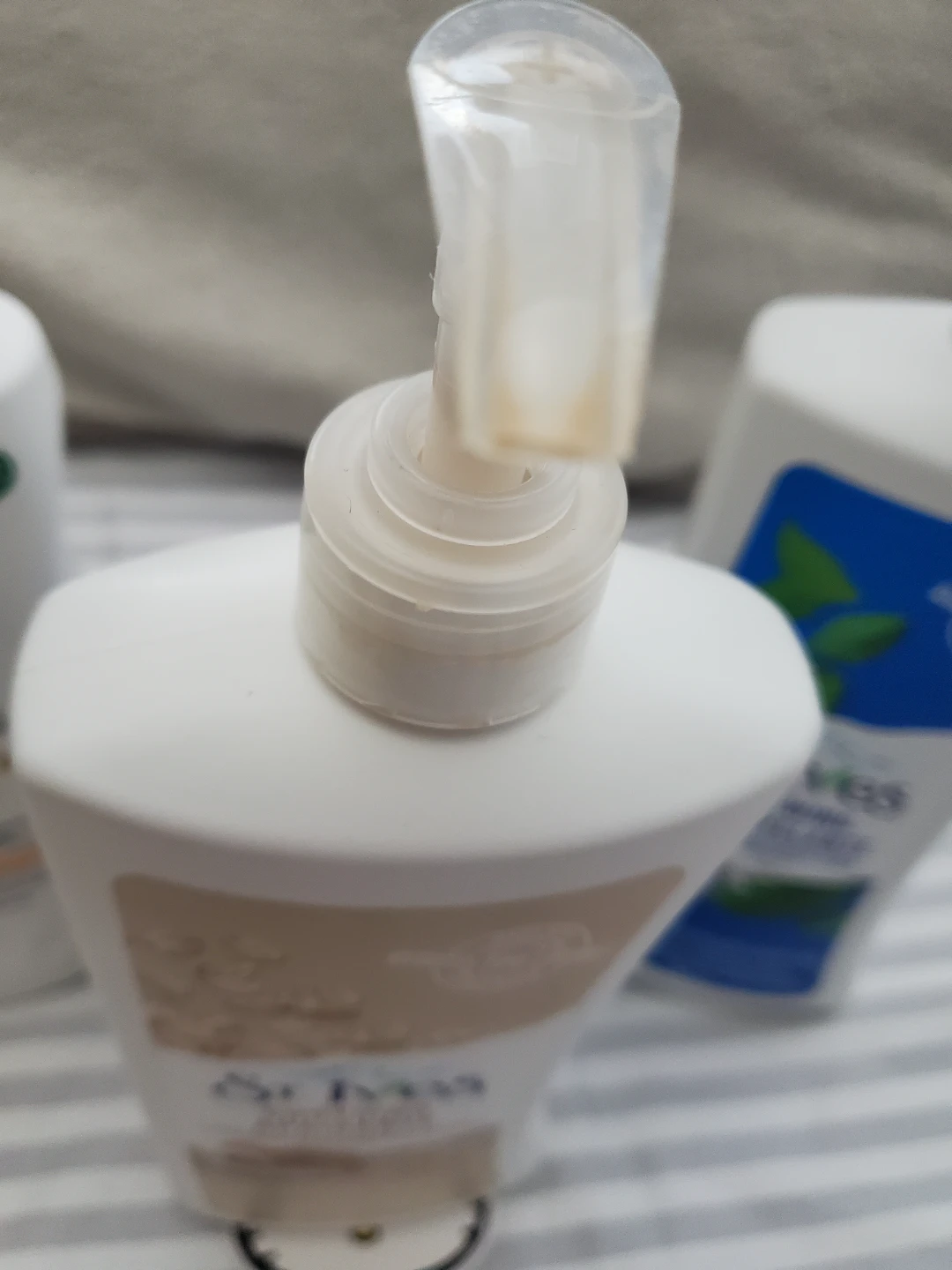 -St ives soothing body lotion (600 ml, almost used up, needs to be scooped from the bottom, pump looks a bit old but cream is still good seems a waste to throw out so including as a bonus; see photos)