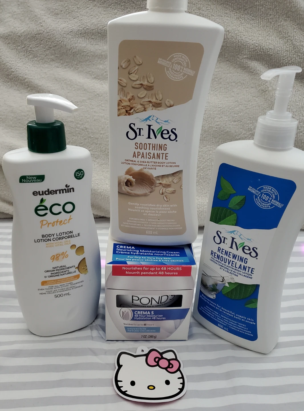 -Eudermin natural ingredients body lotion (500ml, tested once. Strong scent, if you prefer scentless this won't be for you)
