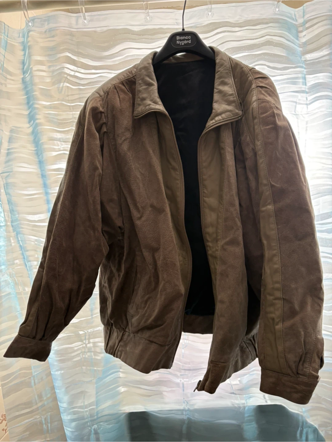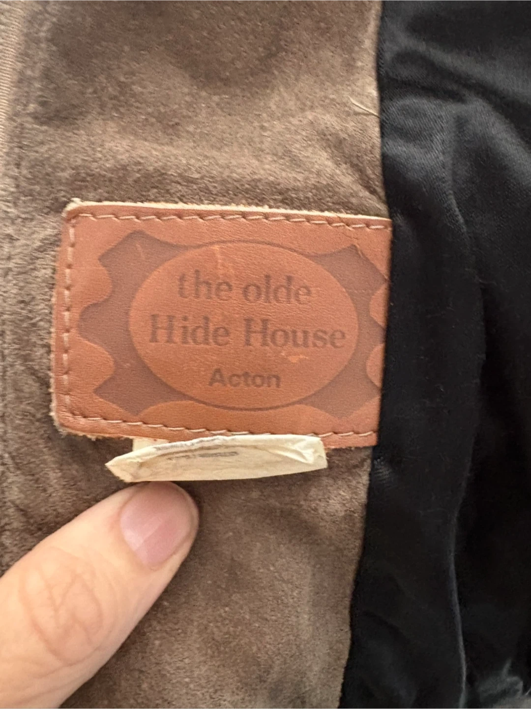 Suede jacket from The Olde Hide House. It's a classic brown colour. Fully lined interior. Pick up is in Fort Erie