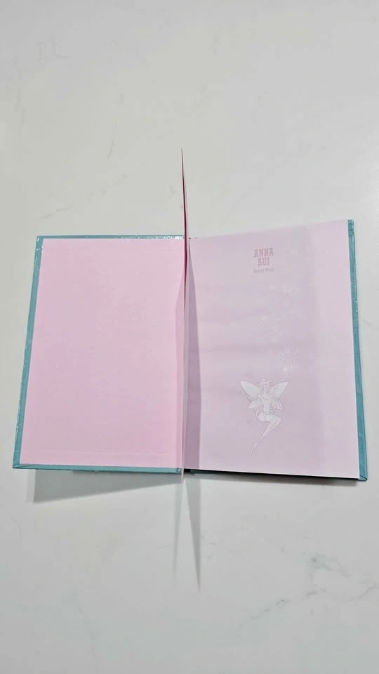 A unicorn for Anna Sui collectors! This limited edition Secret Wish hardcover notebook is the ultimate Y2K stationary. Featuring the signature teal/turquoise "Secret Wish" color palette and the iconic fairy illustration on the front, this is as much a display piece as it is a journal. The Cover: Stunning teal/aqua blue hardcover with a high-detail Anna Sui fairy illustration. The Pages: High-quality, pink, unlined pages perfect for sketching, dreaming, or bullet journaling. Design: Features the signature whimsical, ornate borders and aesthetic that defined Anna Sui’s 2000s era.