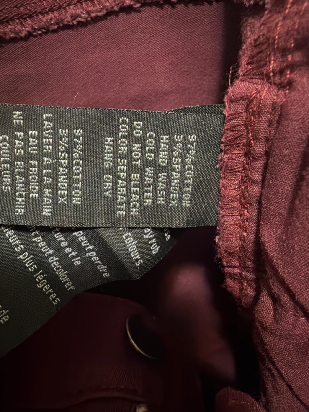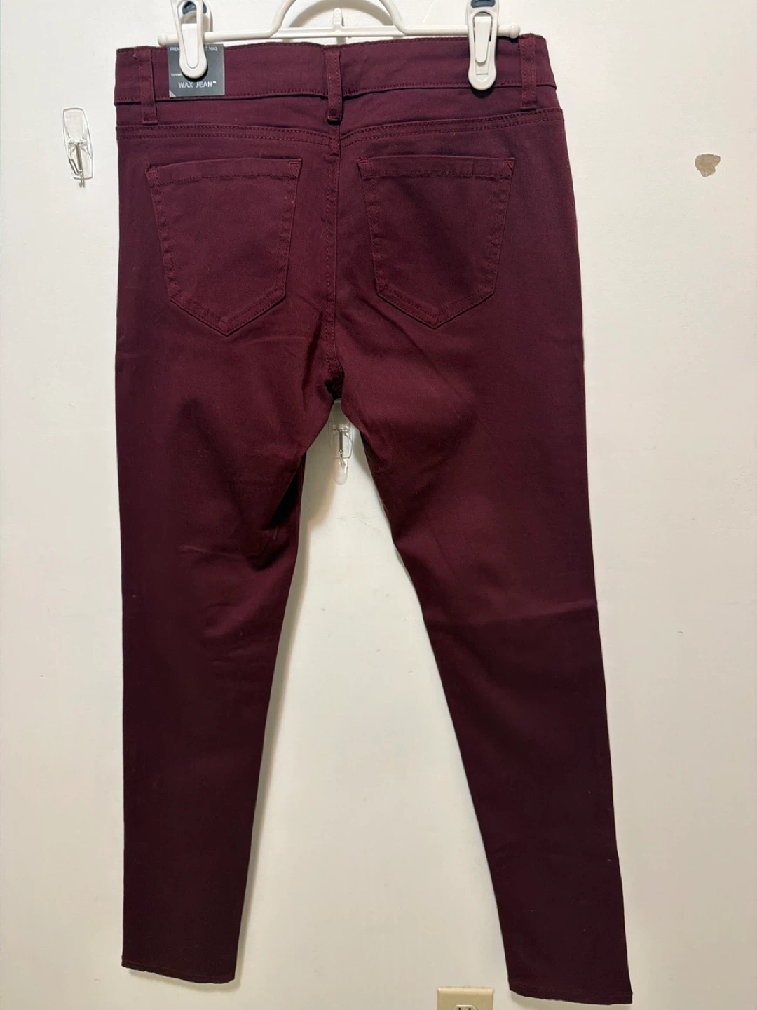 Selling a pair of Wax Jean pants in a lovely burgundy colour! They are a size 7 and made of 97% cotton, and 3% spandex. These jeans are in new condition and ready for a new owner