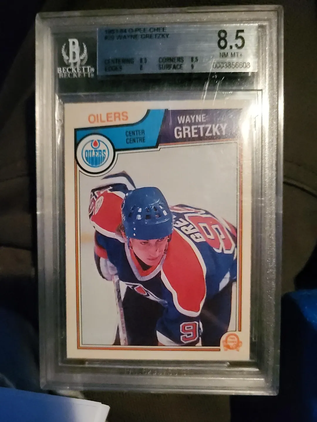 This is a 1983 O-Pee-Chee hockey card featuring Wayne Gretzky. The card has been professionally graded at 8.5 by Beckett. It's a great collectible for any hockey fan!